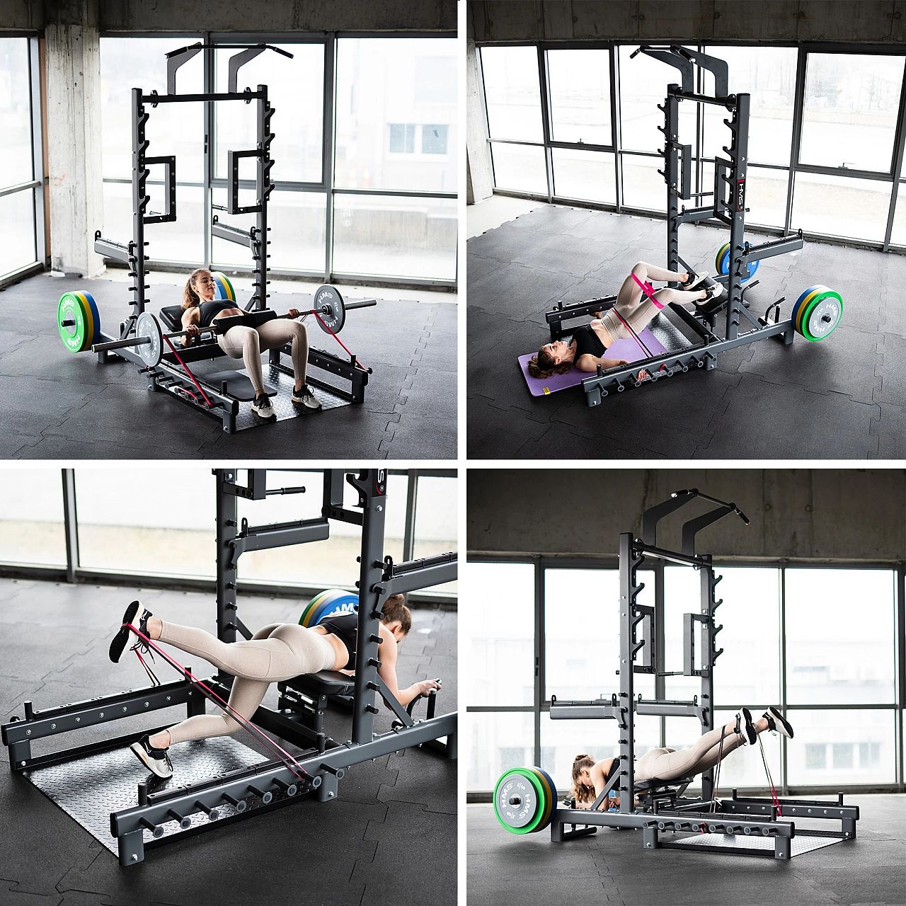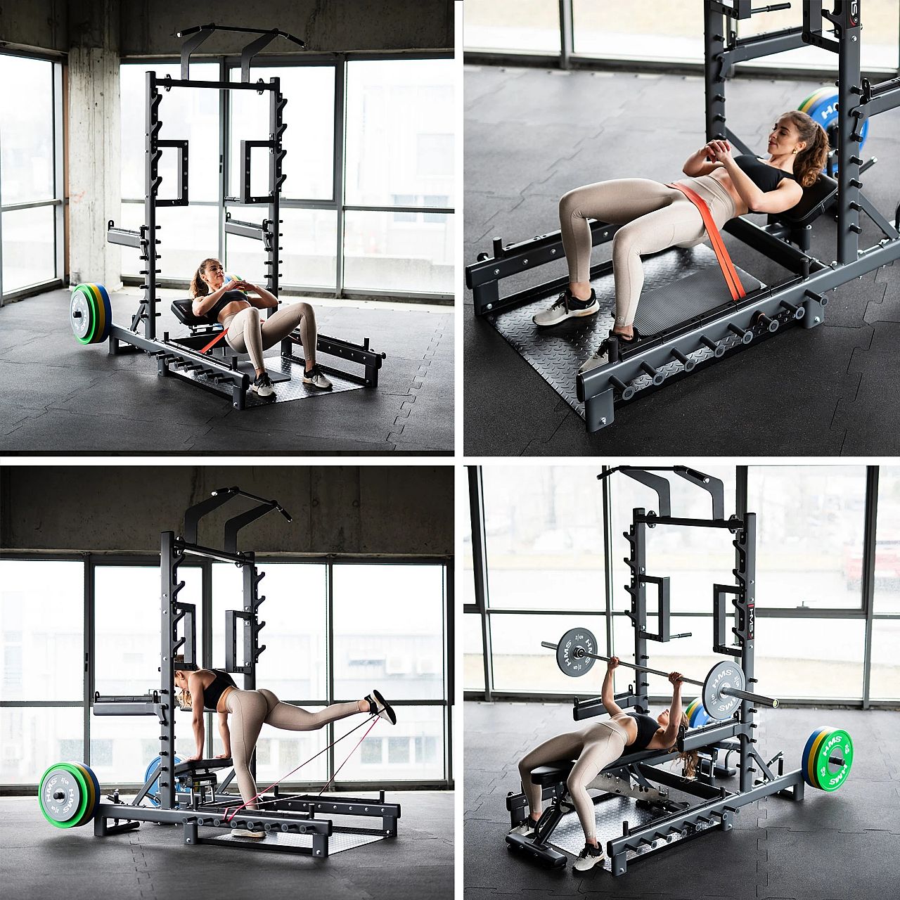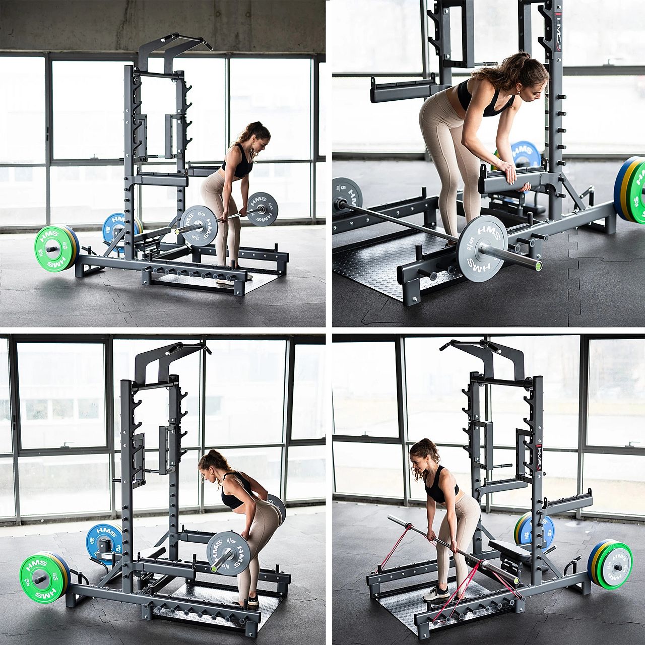 HMS SMP01– це багатофункціональна силова рама з комерційним призначенням, яка стане вашим новим центром тренувань. Вона ідеально підходить для виконання вправ з великими вагами, таких якhip thrust, станової тяги, а також для тренувань зі штангою та гімнастичних вправ. Завдяки продуманій конструкції та численним можливостям регулювання, SMP01 підходить як для домашнього використання, так і для професійних залів.