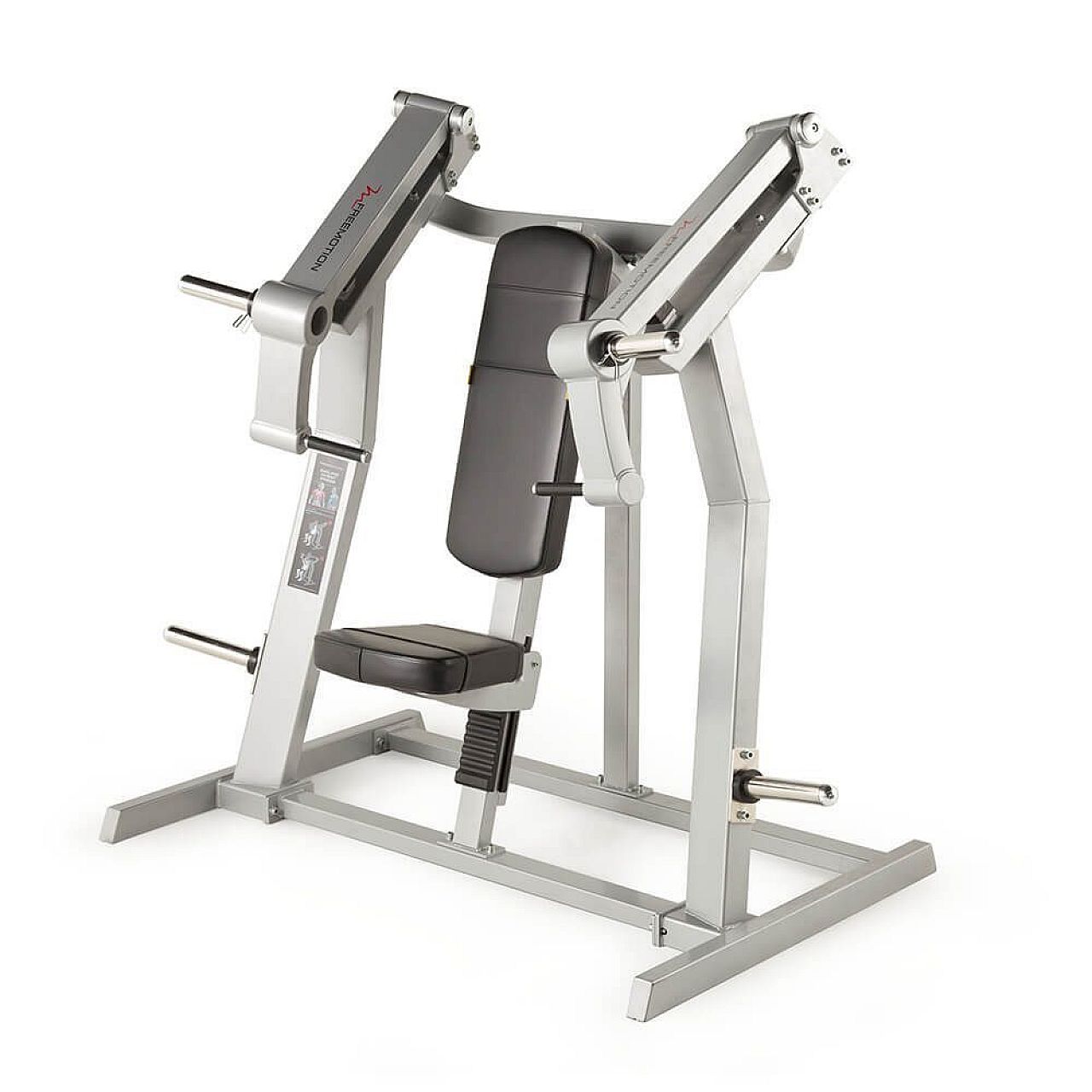 Опис / Жим під кутом вгору FreeMotion F305 Жим під кутом вгору FreeMotion F305 М'язи: верхній відділ м'язів грудей. Вторинне навантаження: припадає на дельтоподібні м'язи та трицепси. FreeMotionЖим під кутом вгору зміцнює та ізолює м'язи грудей та м'язи плеча. М'який, ергономічний дизайн спинки та регульованим м'яким сидінням забезпечують комфортні тренування. Точність повороту підшипники забезпечують плавні, природні повторення в рухах при цьому, не відчуваючи вагу тренажера, лише вага опору. Нікельована пластина розроблена, щоб протистояти корозії, іржі, а також призначена для інтенсивного використання. Оббивка: високоякісна штучна шкіра. Наповнювач: використовується двошаровий пінополіуретан, стійкий до усадки, деформації не піддаються. Забарвлення: порошкова емаль (електростатичне напилення). Гарантія: 10 років – структурна рама; 3 роки – підшипники, напрямні, шківи, вантажоблоки; 1 рік – троси; 120 днів - оббивка, ручки та аксесуари.