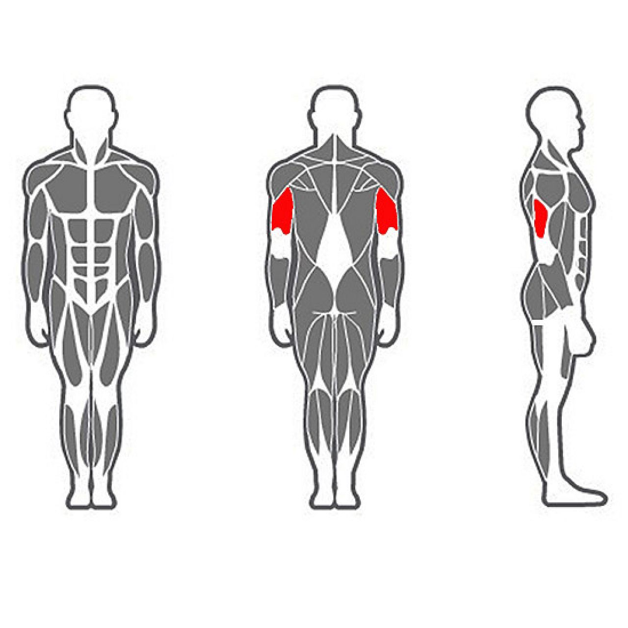 Вправа чудово ізолює триголові м'язи та надає значне навантаження на внутрішній та середній пучок трицепса.