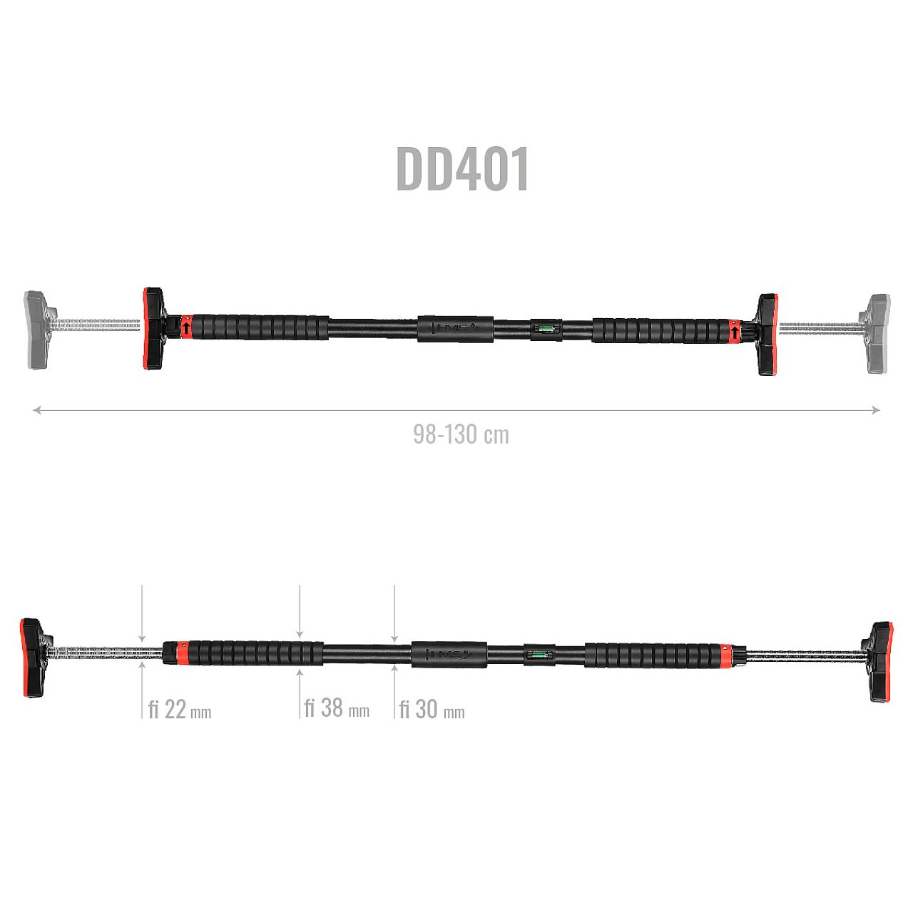 Турнікналаштовується в діапазоні 98-130 см, що робить його сумісним із різними розмірами дверних прорізів. Його встановлення займає лише кілька хвилин і не вимагає спеціальних інструментів – у комплекті передбаченийвбудований ключдля зручного монтажу.