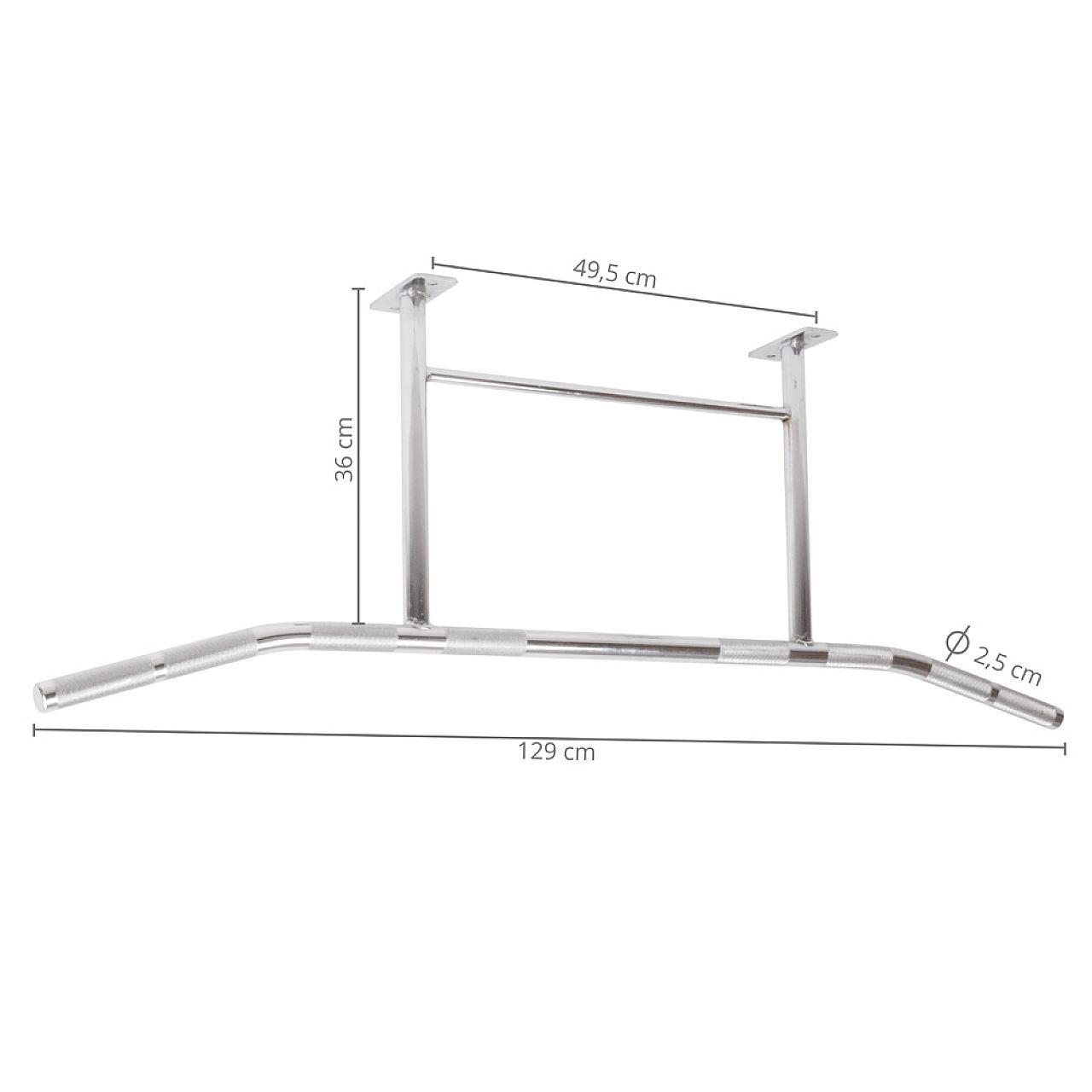 Стельова штанга inSPORTline LCR-1118 - це універсальний тренувальний інструмент із двома ручками, прикріплений до стелі чотирма суцільними гвинтами. Міцна конструкція витримує навантаження до 200 кг. Хромована обробка забезпечує довгий термін служби виробу та надає йому професійного вигляду. Ручки мають протиковзкі гофри, як у випадку класичної шиї. Штанга inSPORTline LCR-1118 ідеально підходить для індивідуальних вправ у домашніх умовах.