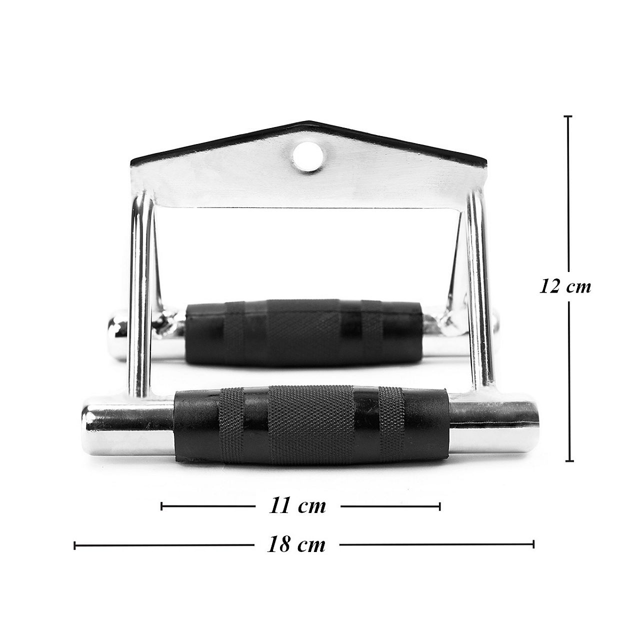 Трикутна структура рукоятки є гарантією ідеального положення руки і в той же час змушує правильний рух під час виконання вправи. Прогумована рукоятка забезпечує надійний хват і запобігає вислизанню інструменту з руки, при цьому вимагає більш міцного захоплення. Завдяки цьому ми також працюємо над розвитком м'язів передпліччя. Не надто широкий рознос ручок полегшує дотримання правильного курсу рухів, тобто утримання ліктів близько до тіла. UW04B виготовлений з високоякісної хромованої сталі, що дозволяє тренуватися зі значним навантаженням.