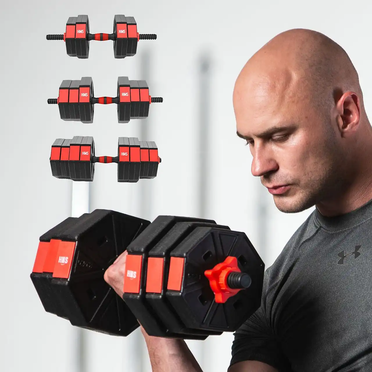 Гантелі зі змінним вантажем – це класичне та незамінне обладнання, яке повинно бути у кожному домашньому спортзалі. Набір SGC40 від HMS включає дві композитні гантелі, які можна з'єднати для створення повноцінної штанги, що надає можливість розширити спектр вправ для різних м'язових груп.