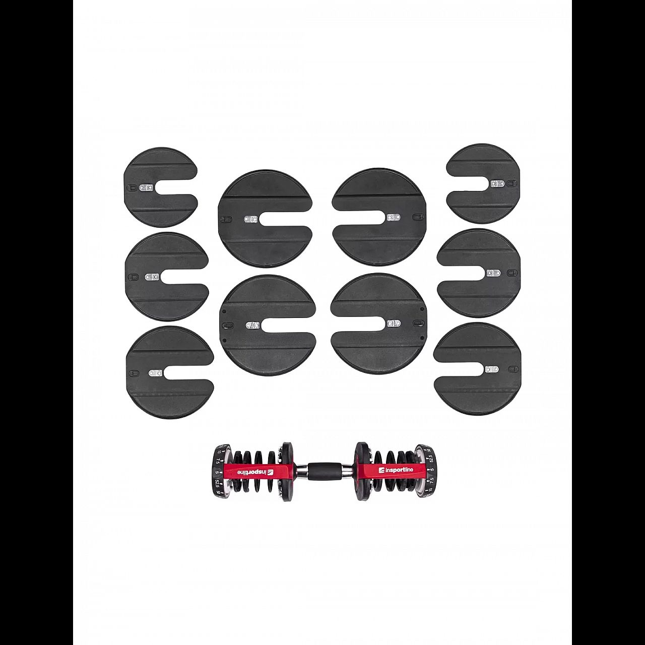 Регульована набірна гантель inSPORTline IRONER 24 - це компактна гантель із унікальною системою додавання ваги. У ній використовуються не звичайні різьбові диски, а менші за розміром пластини, які можна вставити в гантель і закріпити на місці за допомогою червоного повзунка. Гантель IRONER 24 є компактним, який завдяки меншим дискам займає менше місця.
