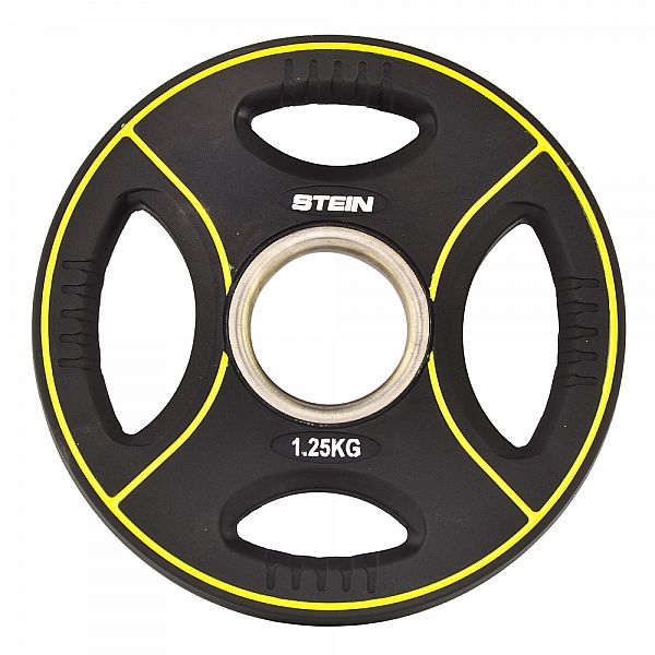 високоміцне TPU (поліуретанове) покриття. кожна вага диска - з окантовкою різного кольору для зручності диференціації.
