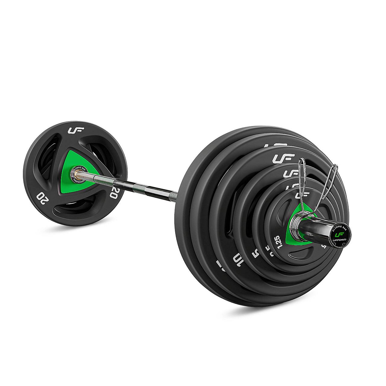 Поліуретанові олімпійські гирі UpForm доступні в таких вагах: 1,25 кг, 2,5 кг, 5 кг, 10 кг, 15 кг і 20 кг. Виберіть ті, які найкраще відповідають вашому рівню навичок.