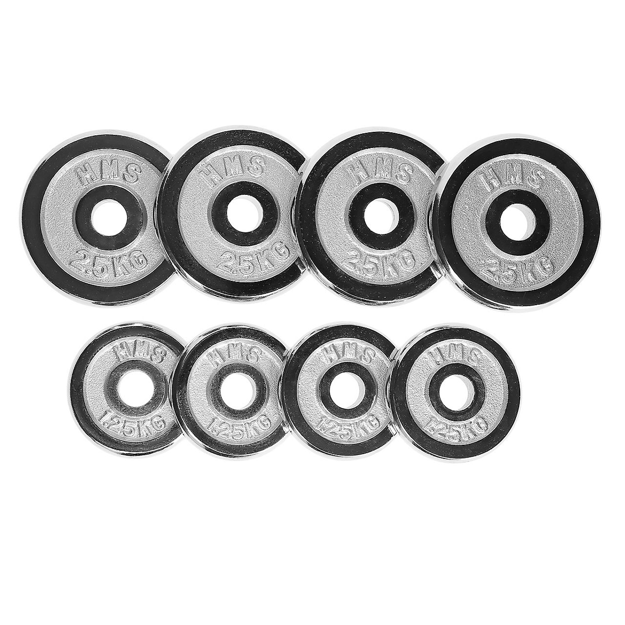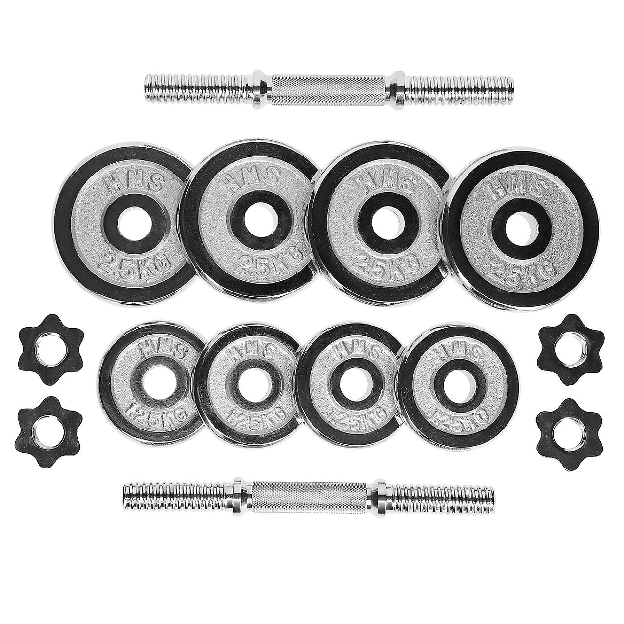 Виріб відрізняється високою мобільністю і зручністю зберігання. Набір виготовлений з матеріалів найвищої якості. Він включає в себе хромовані пластини і додатково посилені прямі шийки з міцними гвинтовими затискачами. Вони мають різьбові кінці, що робить монтаж вантажу простим і швидким (фіксуються швидким рухом за допомогою контргайки). Затискачі рівномірно притискають чорні пластини і не дряпають. Захоплююча частина має рифлену ручку, яка забезпечує міцне захоплення штанги в руці. Набір упакований в практичну валізу для зручності транспортування.