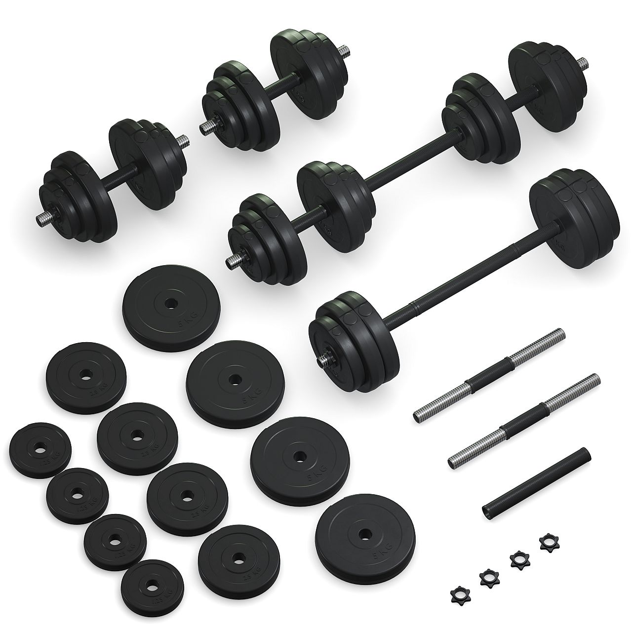 Універсальність 2в1: Відкрийте для себе унікальну можливість використовувати гантелі як звичайні гантелі для ізоляційних вправ, або з'єднайте їх і використовуйте як штангу для комплексних тренувань.