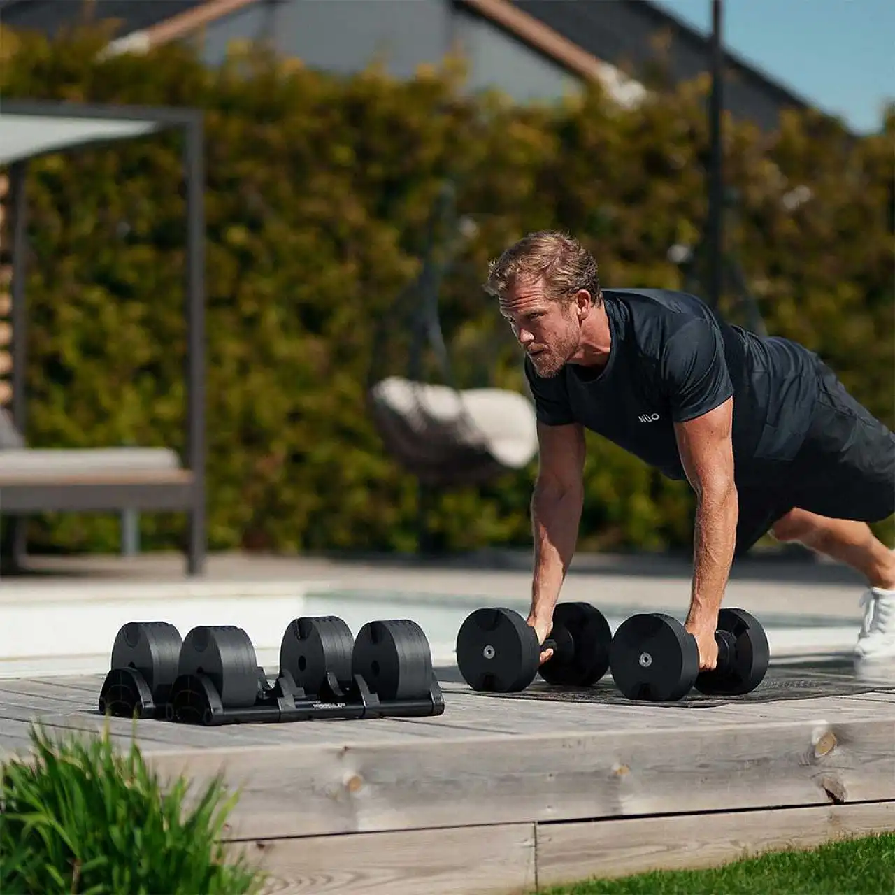 Набірні гантелі NUO Nuobell All Black 2-32 кг пари мають оригінальну конструкцію, яка дозволяє регулювати вагу гантелі простим поворотом ручки. Як тільки ви встановите правильну вагу, підніміть гантель та почніть тренуватися. Дозволяють регулювати вагу від 2 до 32 кг з кроком всього 2 кг – 2-4-6-8-10-12-14-16-18-20-22-24-26-28-30-32 кг.