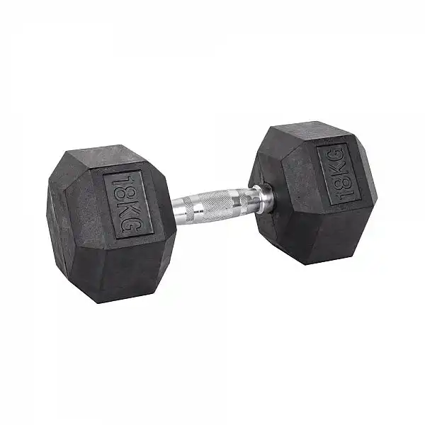 Сучасна одноручна шестигранна гантель inSPORTline Hexsteel 18 кг має універсальне використання. Виготовлена з високоякісного металу, її ергономічна рукоятка має рифлену форму, щоб забезпечити хороший зчеп навіть під час складних вправ. Вагові пластини покриті пластиком для додаткової міцності та запобігання зношуванню. Завдяки своїй шестикутній формі гантель Hex Dumbbell inSPORTline Hexsteel 18 кг не скочується, коли ви ставите її на підлогу.