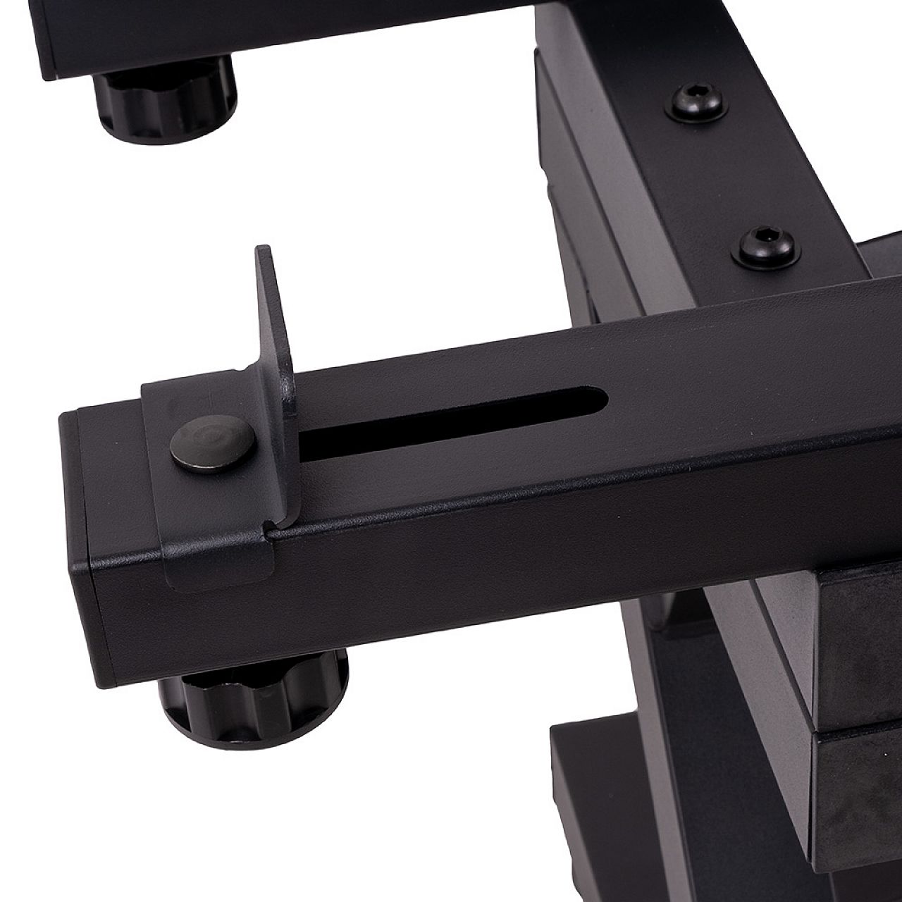 Стійка для регульованих одноручних гантелей inSPORTline DuraBell ® є елегантним і практичним рішенням для зберігання як ваших гантелей, так і їх знімних тягарів! Стабільна сталева рама витримує максимальне навантаження до 100 кг , що робить її ідеальною для пари гантелей inSPORTline DuraBell ® вагою 24,5 кг. Гантелі кріпляться до стійки разом із підставкою за допомогою регулюючих болтів з обох боків стійки.