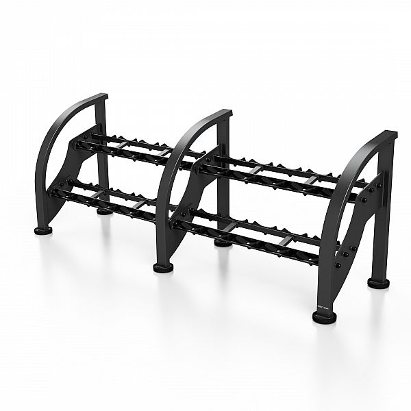 Стенд складається із сегментів, які можна комбінувати до будь-якої довжини. Базовий елемент має довжину 129 см, важить 67,5 кг та вміщує 10 гантелей.