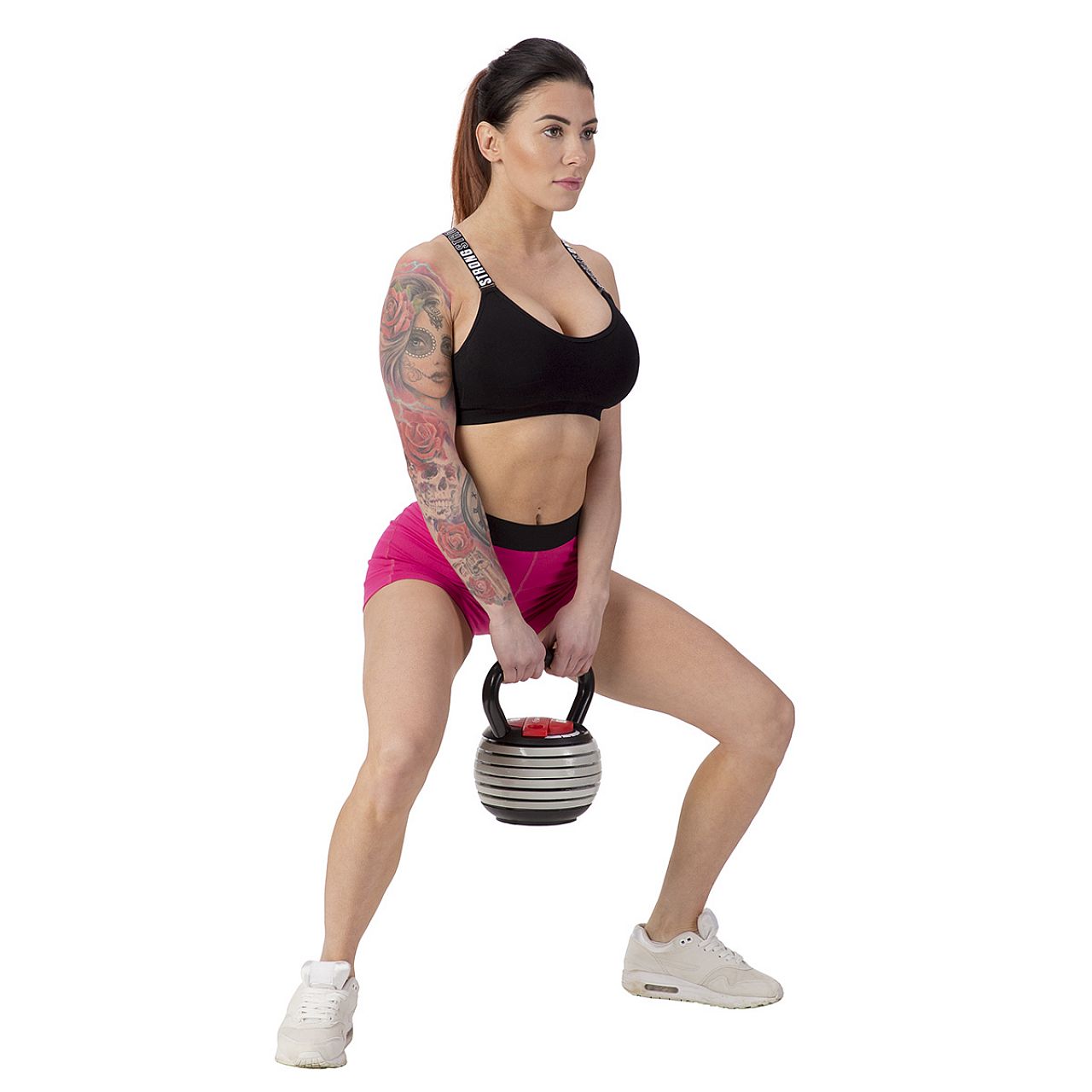 Завдяки використанню змінних пластин замінить на тренуваннях набір традиційних гирь різної ваги. Змінити навантаження дуже просто і швидко. Все, що вам потрібно зробити, це перевести запобіжник у відкрите положення (відкритий замок), встановити відповідні пластини та знову закрити запобіжник (закритий замок). Весь процес займає буквально кілька секунд. Великою перевагою KR20 HMS є його ергономічна форма та зручна широка ручка з порошковим покриттям. Ці функції забезпечують максимальну зручність і безпеку під час тренувань. Ручка діаметром 25 мм дуже добре лягає в будь-яку руку. У свою чергу, плоске дно тягарця гарантує стабільну підтримку. Заняття з регульованою гирею зміцнюють м'язи, відмінно розвивають координацію рухів, а разом з тим підвищують загальну працездатність організму. Його великою перевагою є можливість виконання т. зв багатосуглобові вправи, які активізують м’язи, які часто пропускають під час класичних силових тренувань.
