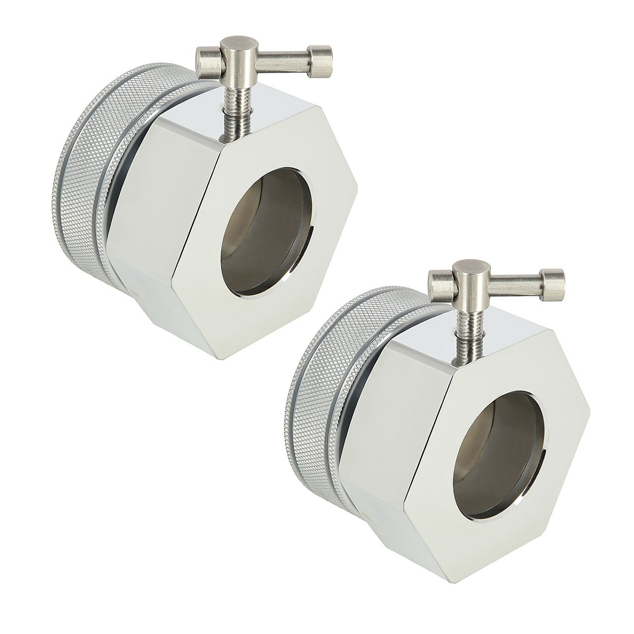 Затискачі виготовлені з міцної полірованої сталі. Для їх використання не потрібні інструменти, завдяки шплінту гвинт легко закручується. Їхня конструкція, заснована на короткому корпусі, залишає багато місця на ваговому рукаві для максимального навантаження на штангу.