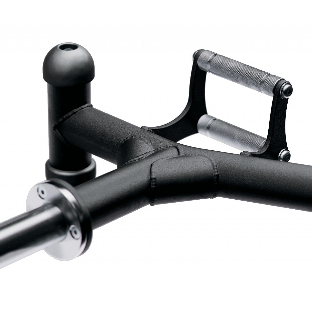 Öppen Bar – треп-гриф з відкритими сторонами – призначений для полегшення підйому та надає широкий спектр можливостей підйому та тренувань: звичайні та станові тяги, жим, випади та багато іншого. Вбудований навантажувальний домкрат із гумовими ніжками дозволяє додавати та знімати вагові диски, не піднімаючи штангу, а також зберігати рівновагу штанги під час підйому.
