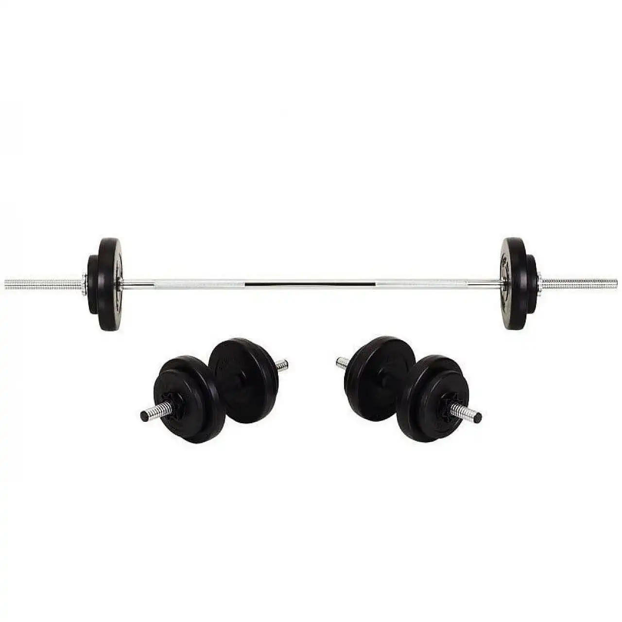 Диски з міцним ABS-покриттям надійно захищають підлогу від подряпин і зменшують шум під час тренувань. Хромовані сталеві грифи з рифленими ручками забезпечують впевнений хват і комфорт навіть під час інтенсивних занять.