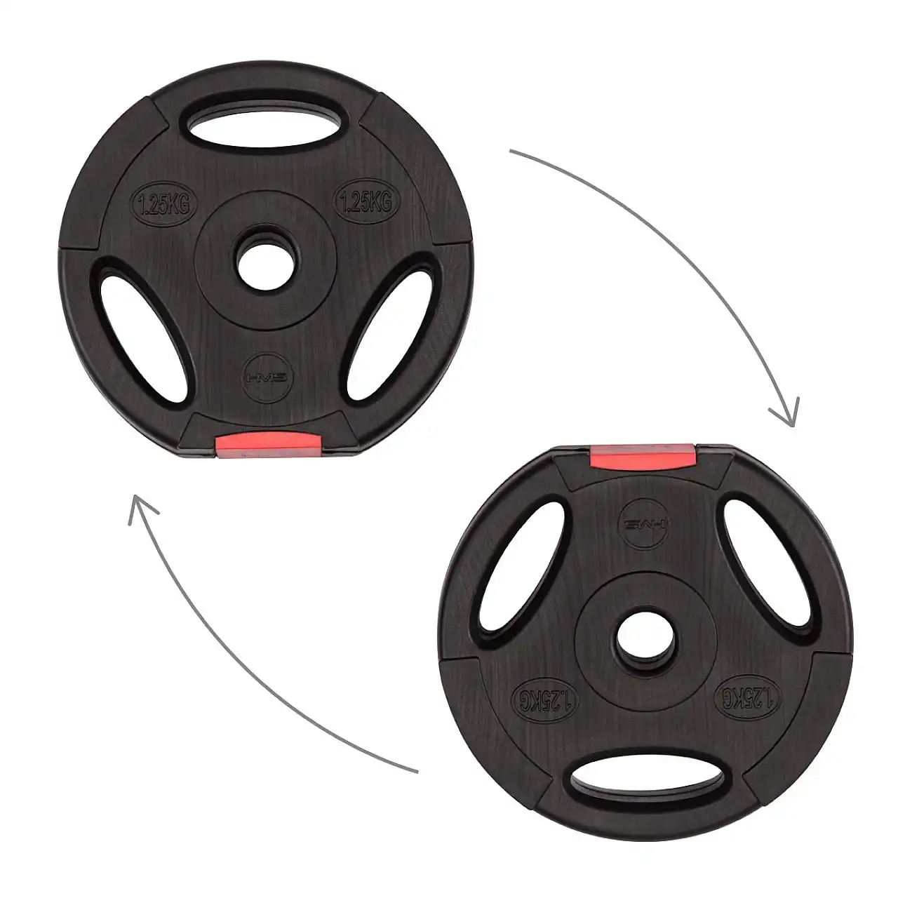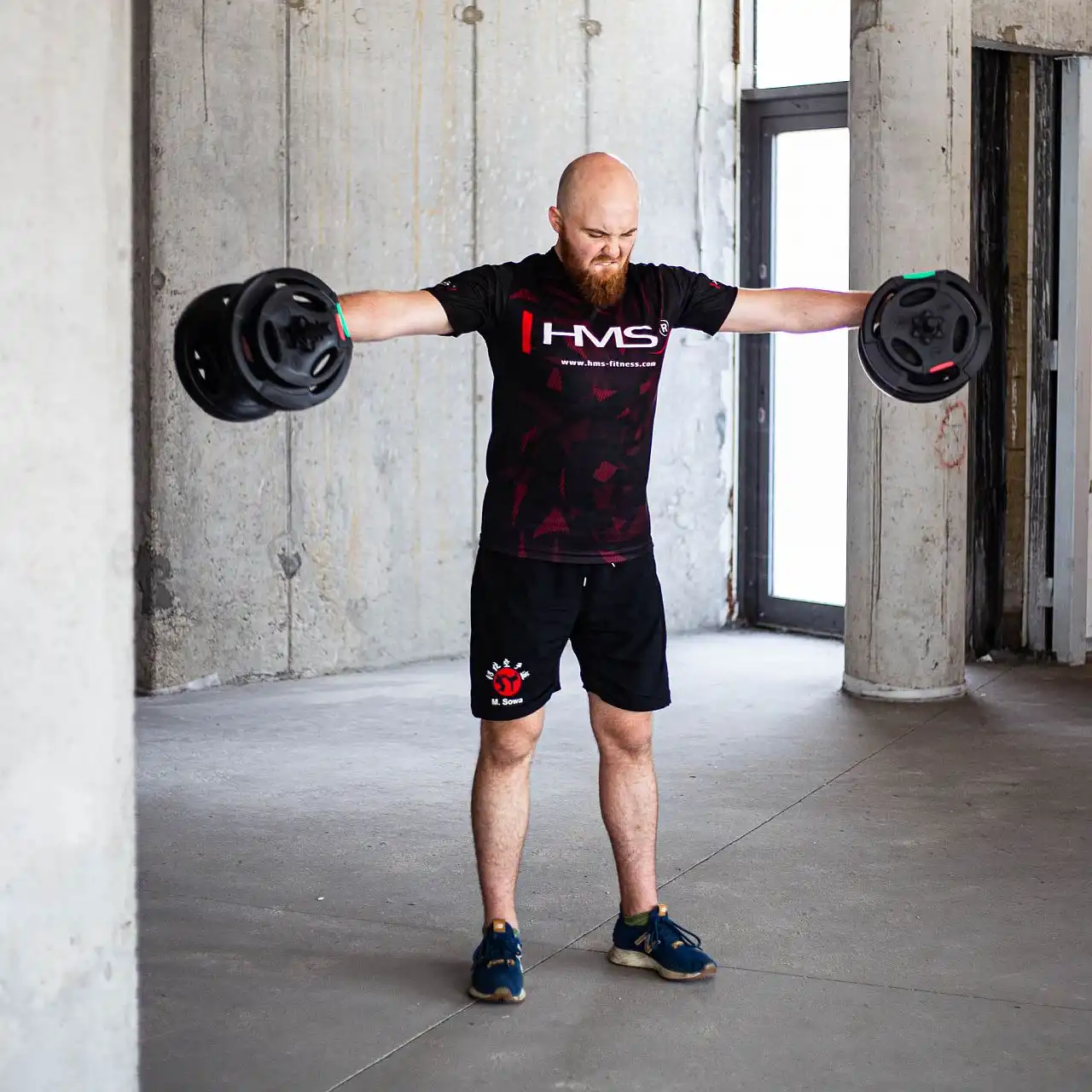 Набір HMS SG40 включає два грифи та композитні диски з загальною вагою 42 кг. Цементне наповнення та якісний пластик на зовнішньому шарі гарантують високу міцність виробу. Гвинтові затискачі та ідеально підібраний діаметр отвору дисків сприяють швидкій зміні навантаження та, в той же час, надійному та постійному позиціонуванню на грифі. У набір входять дві штанги, чотири затискачі та загалом 16 дисків. Гантелі підходять як для досвідчених користувачів, так і для початківців. Почніть займатися вже сьогодні, SG40 HMS — ідеальне рішення для домашнього тренажерного залу.
