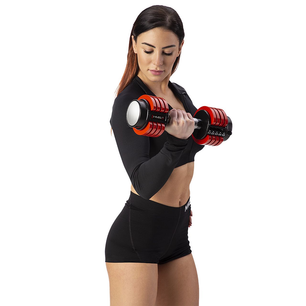 Виріб виготовлено з преміальних матеріалів. Великою перевагою SR12 є гриф-рукоятка гантелі, який має ергономічний дизайн, покритий протиковзким матеріалом. Регульована гантель від HMS є інноваційним рішенням для всіх любителів силових дисциплін - 8 пластин дозволяють вільно регулювати навантаження відповідно до потреб користувача.