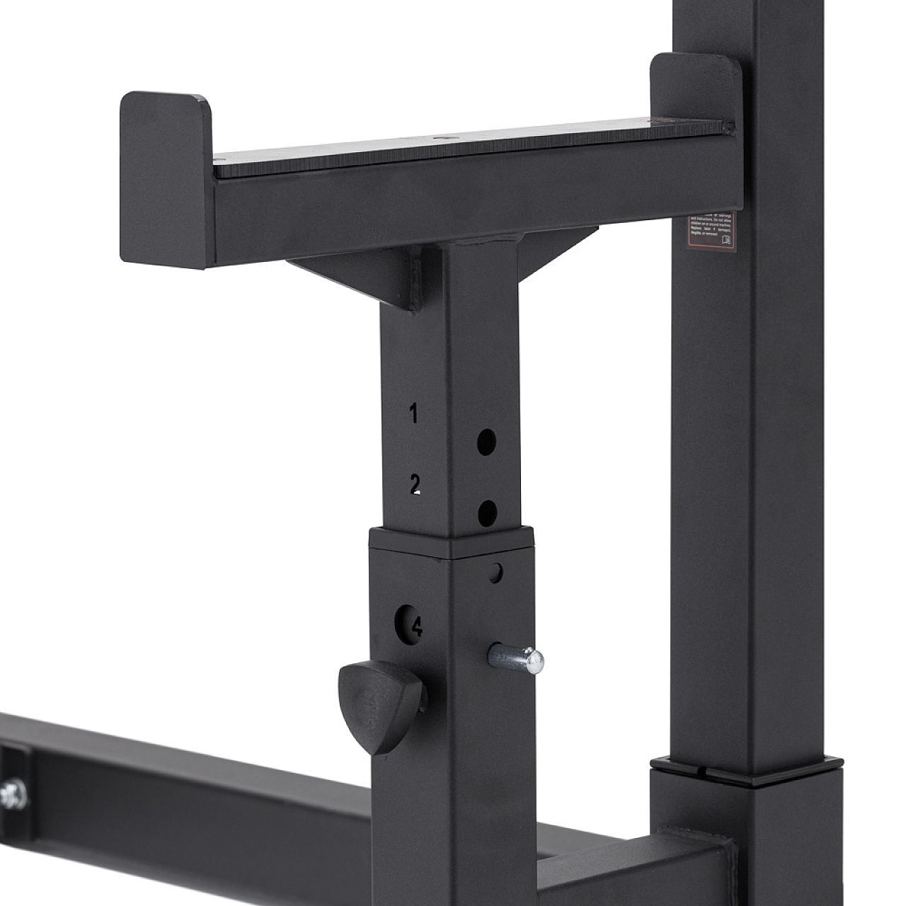 У вас немає спаринг-партнера? немає проблем Стійка може похвалитися фіксаторами безпеки для додаткової безпеки. Вони нададуть підтримку, коли ви втратите контроль над штангою або своїм рухом.