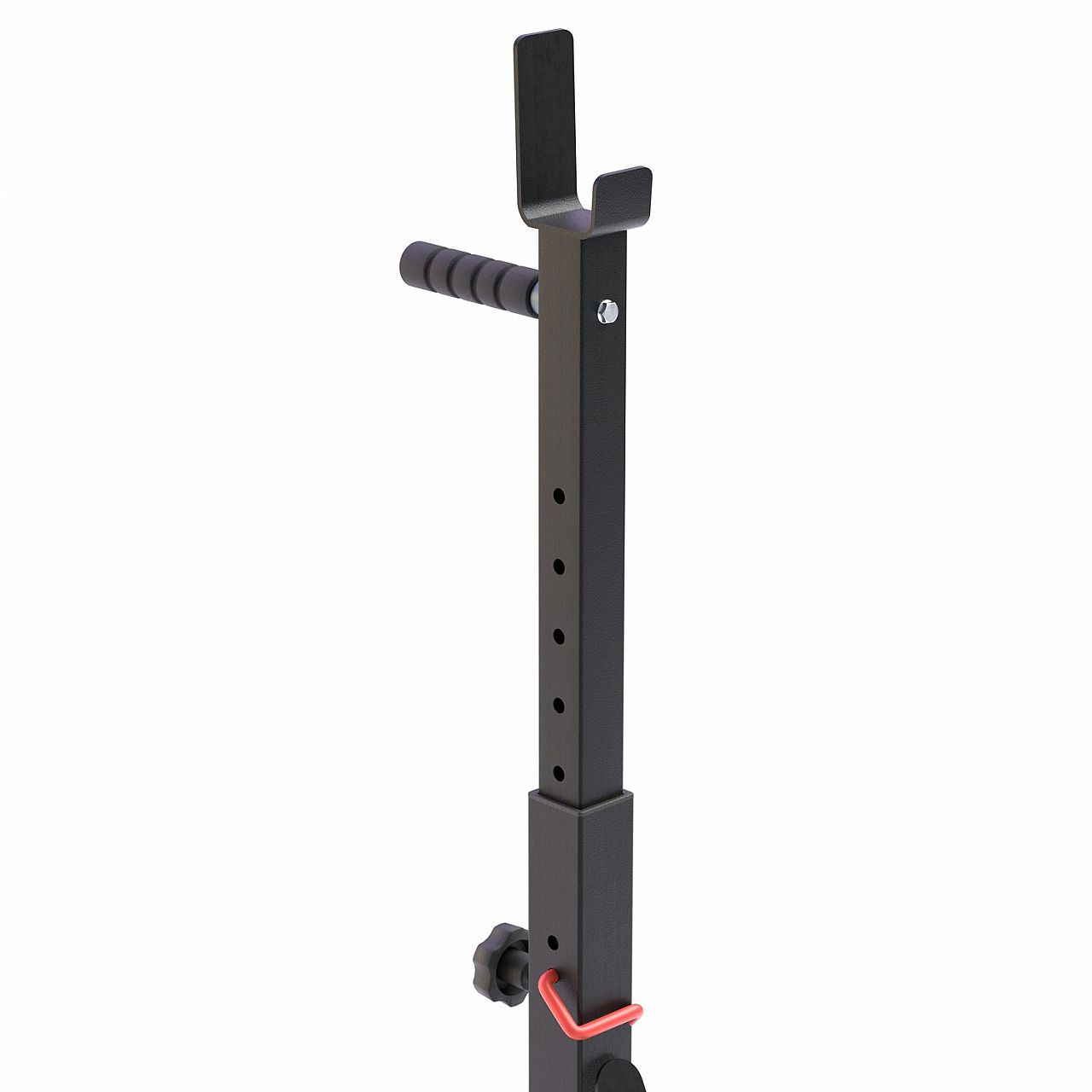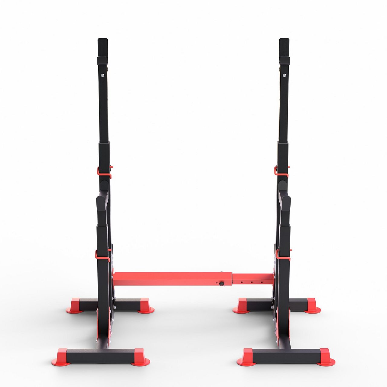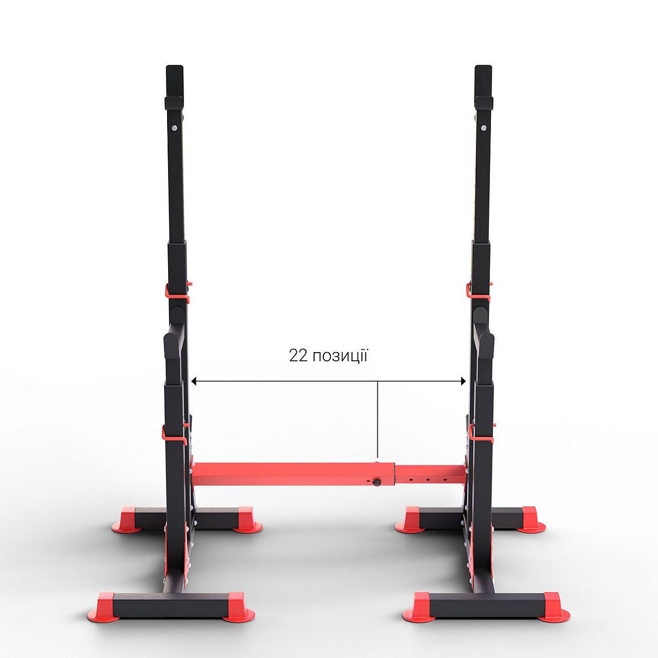 Стійки мають 22 рівня регулювання відстані між стійками. Це дозволяє комфортно використовувати штанги різної довжини та підібрати оптимальну постановку рук для жиму або присідань.