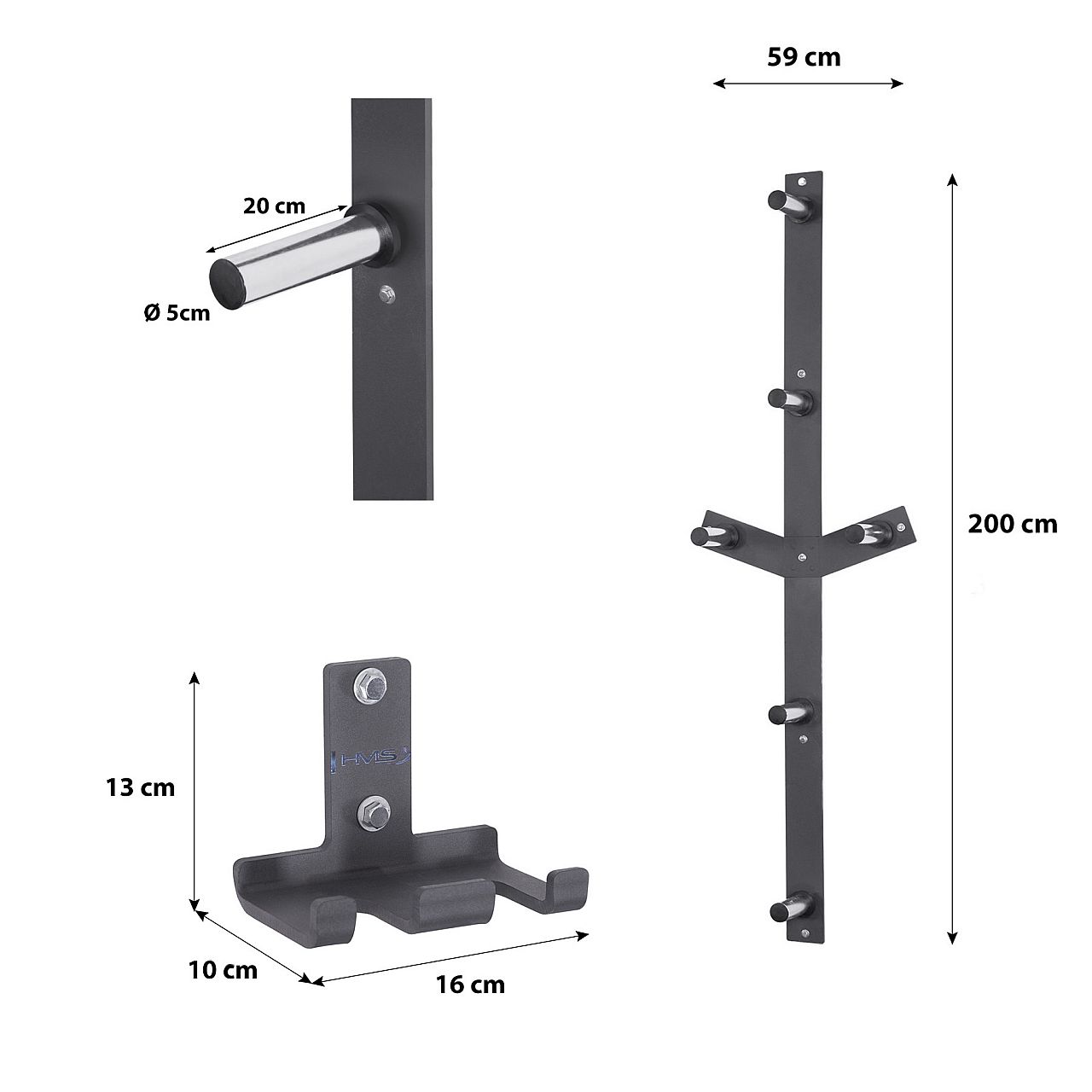 Якщо ви шукаєте ефективний спосіб зберігання штанг і гир, набір HMS — ідеальне рішення для вас. Настінний тримач штанги та підставка для ваги заощадять вам багато місця у вашому тренувальному місці.