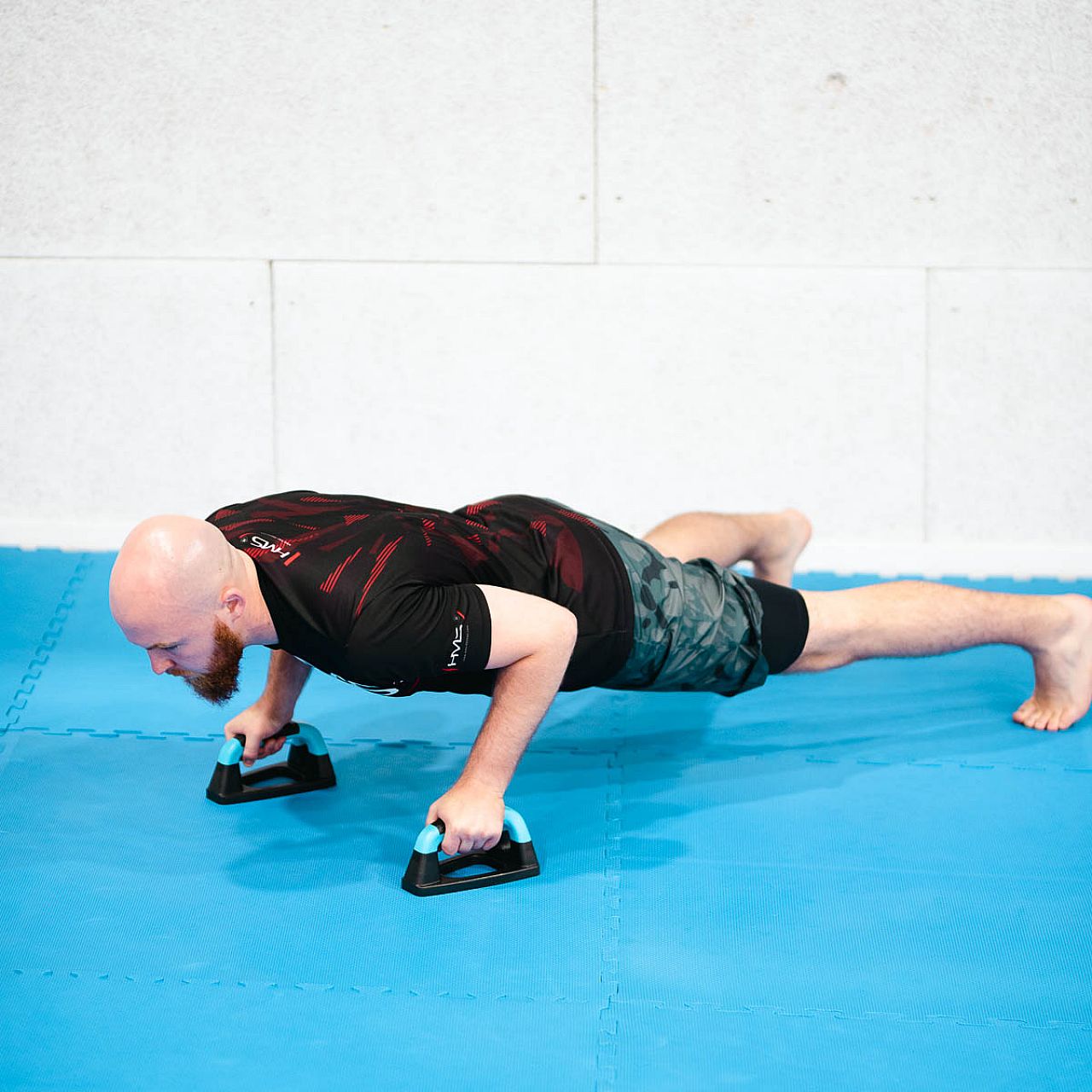 PU05 HMS дозволяє виконувати як традиційні віджимання (з вузькою або широкою постановкою рук), так і хрест-навхрест від корпусу, а також віджимання в стійці на руках. У той же час форма PU05 забезпечує природне розташування рук і зап'ясть під час виконання вправи.