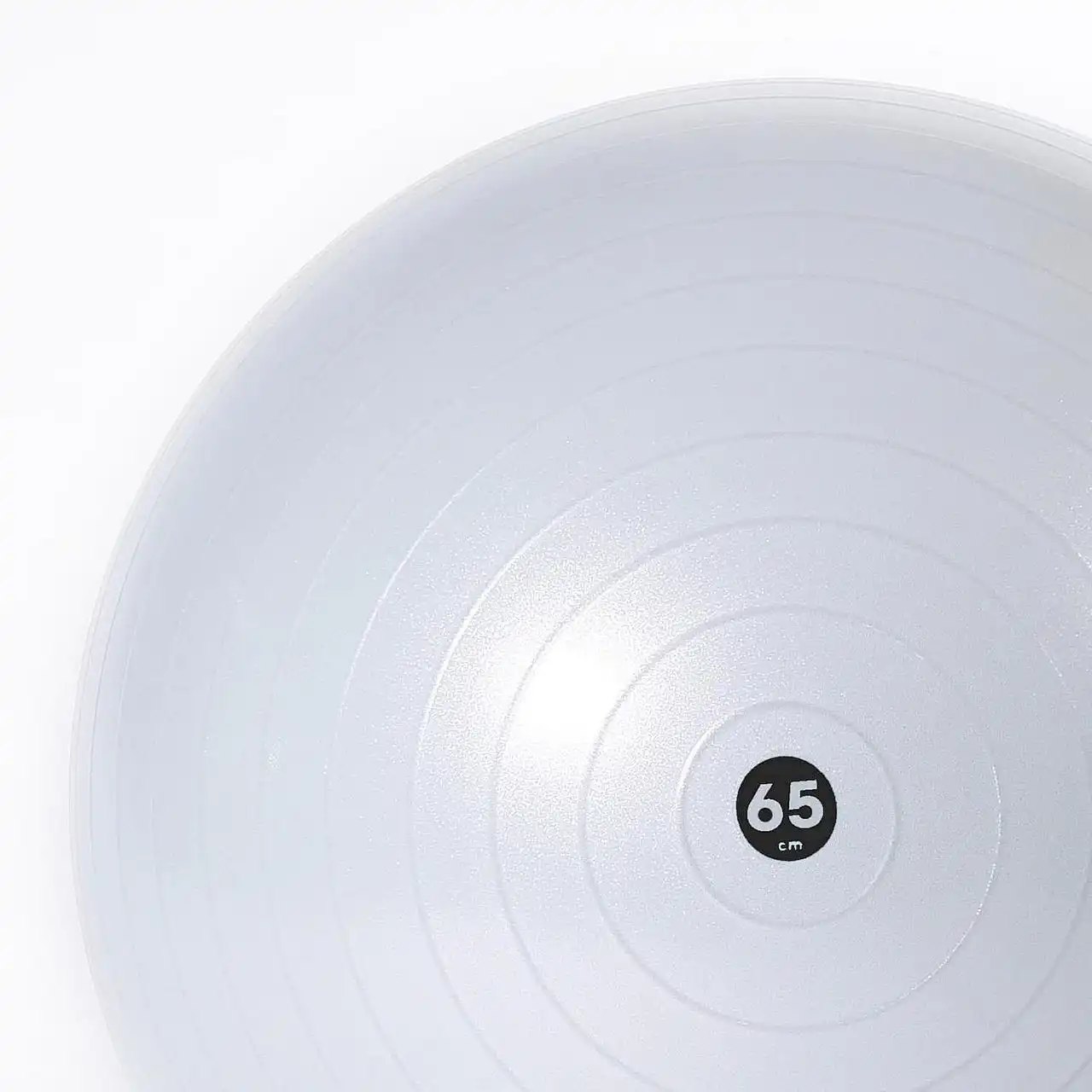 Piłka gimnastyczna w rozmiarze 65 cm odpowiednia dla osób wzroście 170 - 185 cm. Piłka gimnastyczna przeznaczona do wszelkich ćwiczeń ruchowych, wzmacniających, rozciągających, korekcyjnych, pilatesu, jogi i rehabilitacji. Dobierając piłkę do wzrostu, ważne jest, щоб siedząc, kąt pomiędzy miednicą a kolanami wynosił 90 stopni. Innowacyjny design dzięki wyjątkowej strukturze powierzchni, zapewniającej duży komfort ćwiczeń. Zastosowana technologia Anti-burst zapobiega odkształcaniu się piłki oraz zwiększa jej wytrzymałość. Do zestawu dołączona jest pompka pozwalająca на szybkie i łatwe napompowanie piłki.