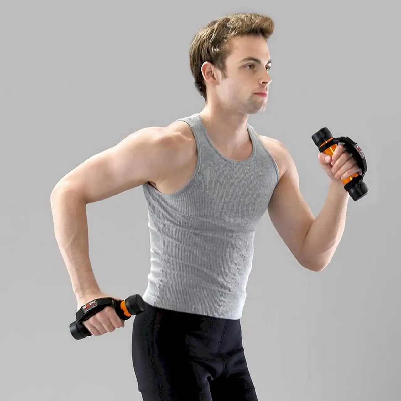 Hantle z uchwytem BW 318 marki Body Sculpture s doskonałym elementem uzupełniającym trening mięśni rąk i górnych partii ciała. Їх niewielka waga sprawia, що idealnie przydadzą się nie tylko początkującym użytkownikom, але też bardziej zaawansowanym sportowcom (np. як dodatek do joggingu). Podczas treningu z małym ciężarem, całą pracę wykonują konkretne partie mięśni. Dzięki temu ćwicząc mniej narażasz się na kontuzje. Uchwyty hantli pokrytі są wytrzymałą, miękką pianką, co sprawia, że dobrze układają si w dłoni i nie powodują odcisków. Elementem wyróżniającym się są regulowane, zapinane на rzep paski. Zapewniają bezpieczeństwo, ponieważ nie wypadają z dłoni podczas energicznych treningów.