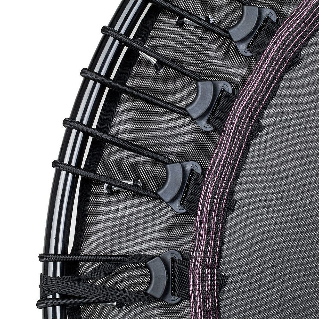 inSPORTline Cordy – це спеціальний тип батутів без пружин. Мат для стрибків прикріплений до 32 гнучких петлів . Таким чином, ви зможете безшумно стрибати, не турбуючись про скрип металу. Оскільки біля килимка для стрибків немає твердих компонентів , його безпечніше використовувати. Вісім сталевих ніжок з гумовими накладками підтримують сталу сталеву конструкцію з вантажопідйомністю 110 кг.