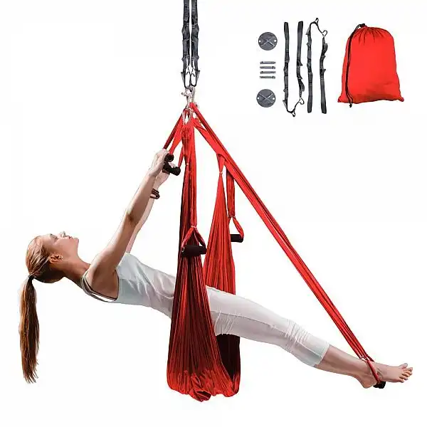 Гама Aerial Aero Yoga inSPORTline Hemmok Red, що звисає зі стелі, з кріпленнями і ременями підходить для літаючої йоги (також відомої як повітряна йога або антигравітаційна йога). Антигравітаційна йога поєднує у собі традиційні пози йоги, акробатику та танець. Цей гамак дозволяє вам виконувати пози йоги, які інакше ви не змогли б зробити. Крім того, це також надзвичайно ефективний аксесуар для вправ, оскільки пози йоги допомагають зміцнити стегна та прес. Виготовлений із зручного та міцного нейлону Taffeta Nylon, цей гамак прикріплений до стельового кріплення за допомогою сталевих карабінів. Залежно від кріплення обмеження вагою може становити до 200 кг. Всі ці атрибути роблять гамак Aerial Aero Yoga Hammock inSPORTline Hemmok Red з кріпленнями та ременями популярним аксесуаром для йоги.