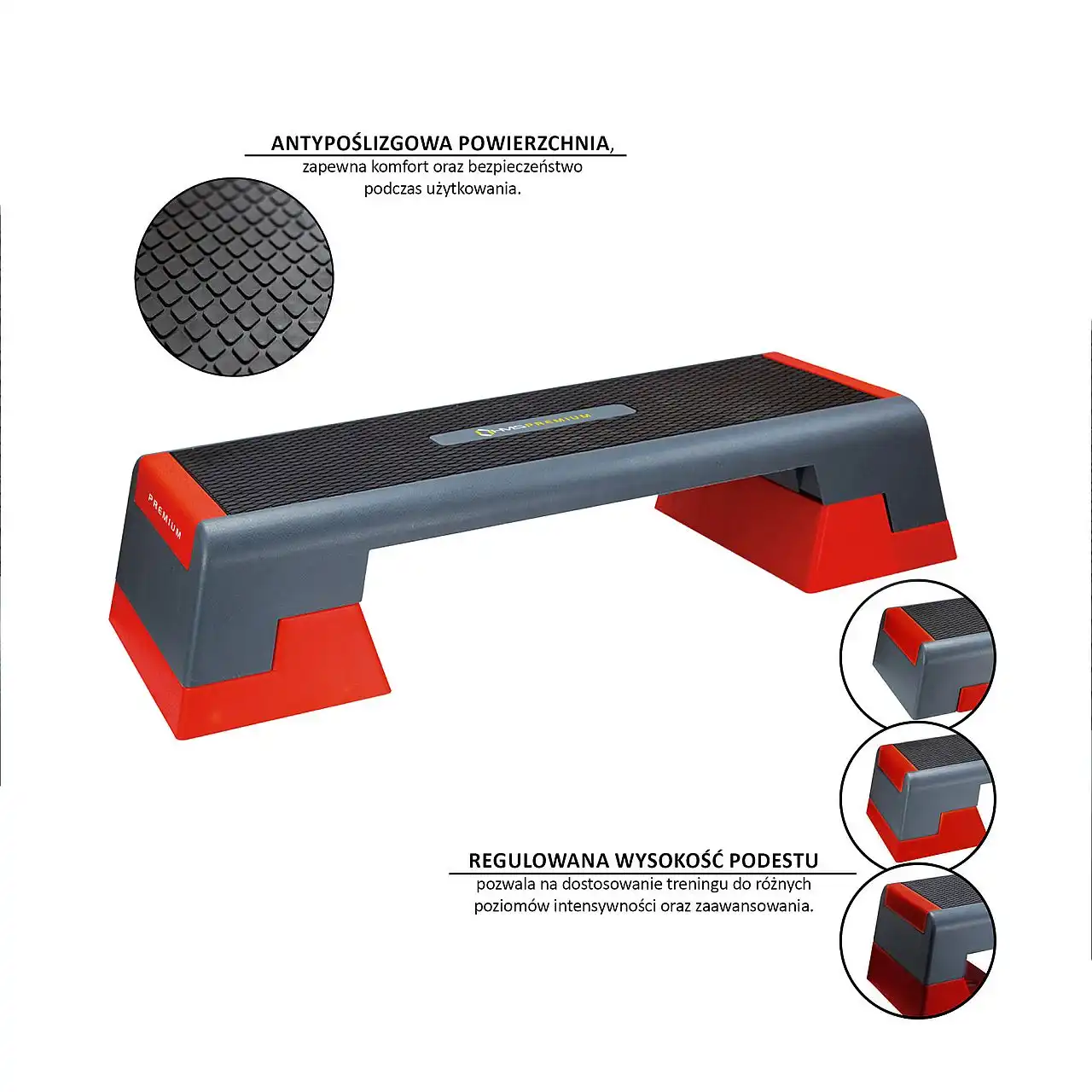 Регульована висота платформи дозволяє адаптувати тренування до різних рівнів інтенсивності та прогресу.