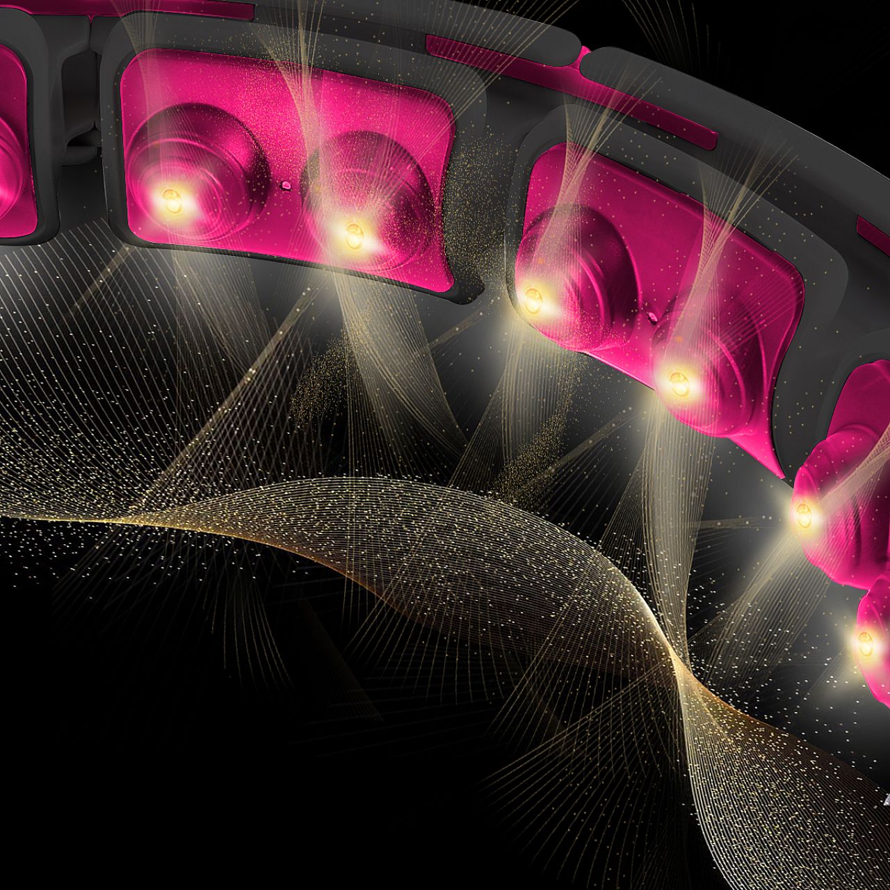 Завдяки руху на 360 градусів пружини, розташовані в головках, розташованих по всій окружності петлі, відмінно поглинають перевантаження і підлаштовуються під тіло, що створює додатковий масажний ефект, забезпечуючи тілу приємні відчуття. Техніка тривимірного масажу швидко стимулює м'язи. Вбудовані виступи зі спеціально розробленим зовнішнім виглядом мають амортизацію для комфортного тренування. Відрегулюйте інтенсивність вібрації за допомогою швидкості обертання.