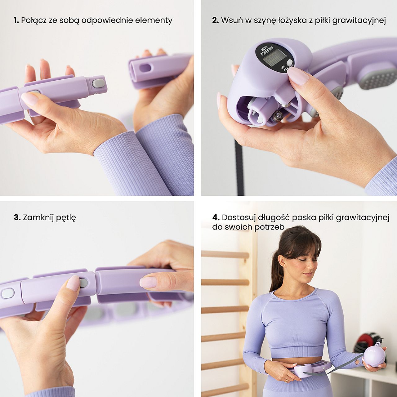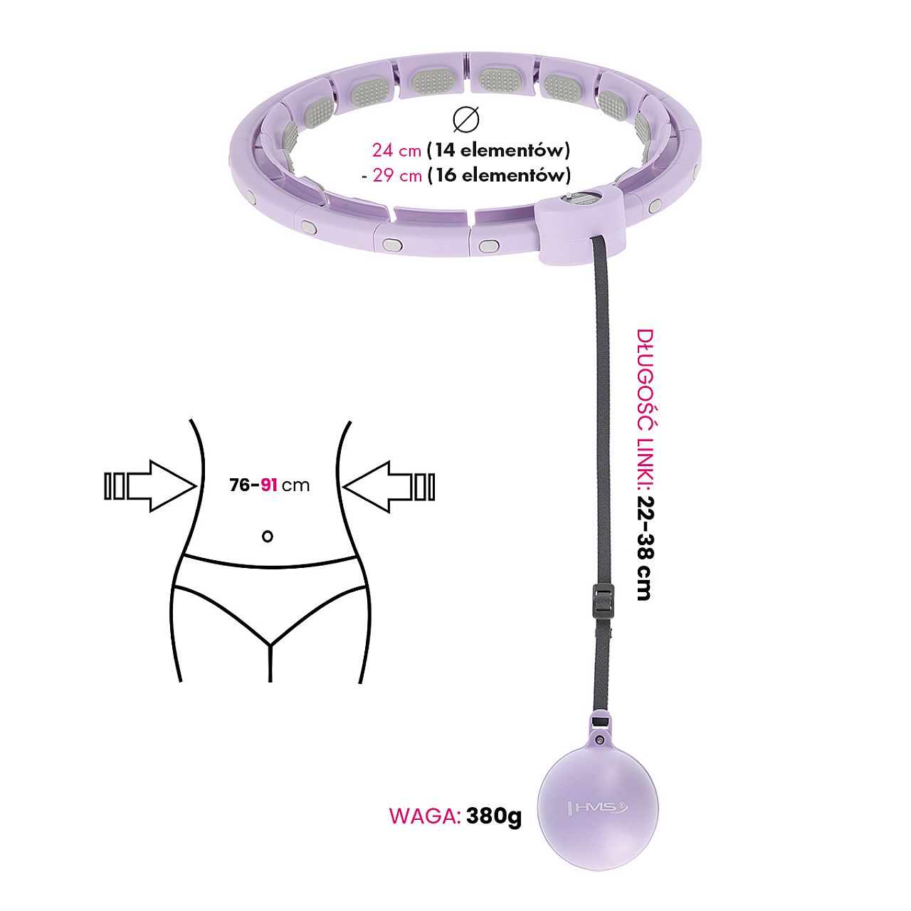 Швидко і зручно зменшуйте або збільшуйте розмір колеса, просто зніміть або приєднайте стільки елементів, скільки потрібно. HHW09 має загалом 16 елементів. Розмір можна встановити від 14 до 16 елементів, тобто обхват талії від 76 см до 91 см (діаметр петлі: 34,5 см до 39 см). Завдяки цьому пристрій ніколи не впаде під час тренування, тому ним зможуть користуватися навіть новачки.