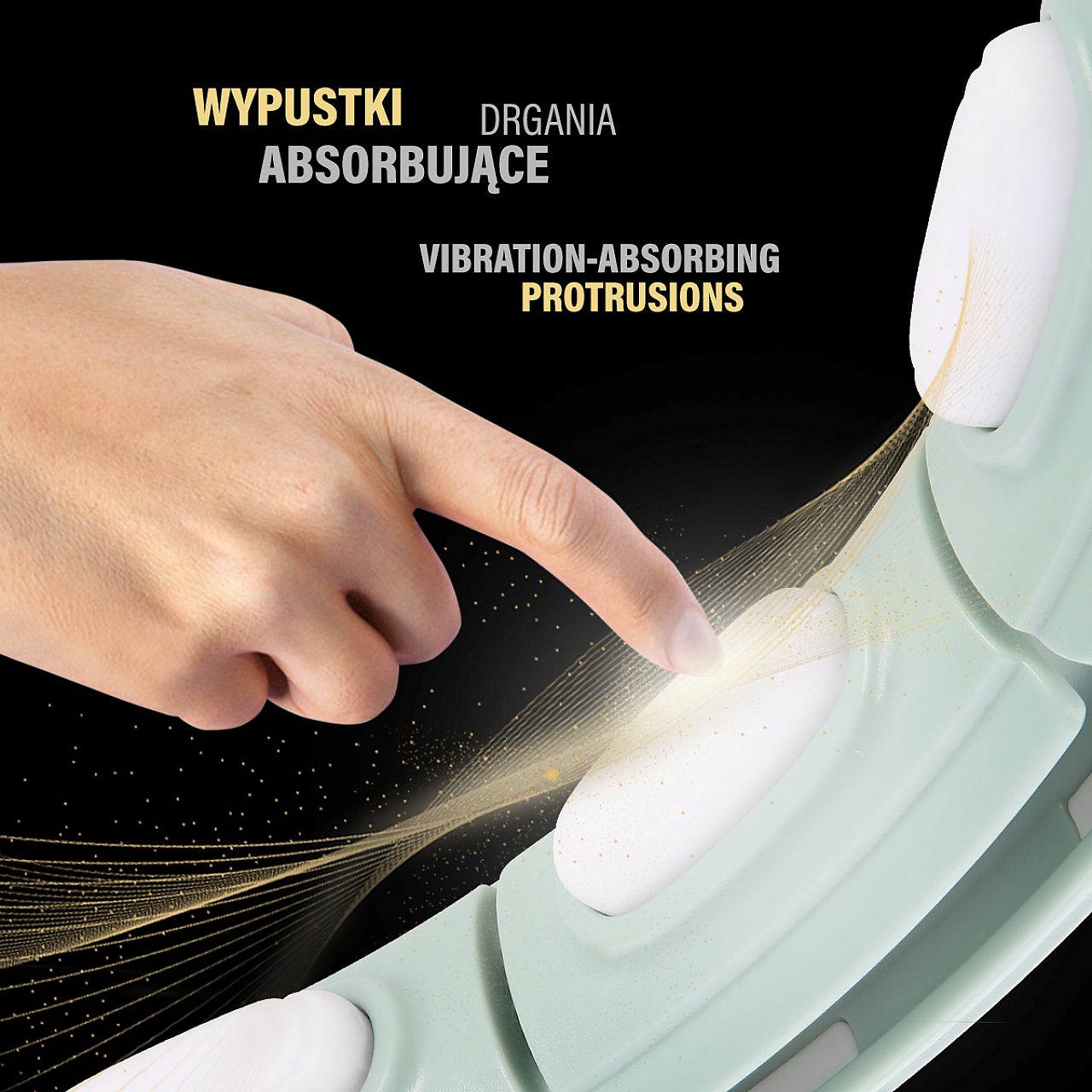 Завдяки руху на 360 градусів пружини, розташовані в головках, розташованих по всій окружності петлі, відмінно поглинають перевантаження і підлаштовуються під тіло, що створює додатковий масажний ефект, забезпечуючи тілу приємні відчуття. Техніка тривимірного масажу швидко стимулює м'язи. Вбудовані виступи зі спеціально розробленим зовнішнім виглядом мають амортизацію для комфортного тренування. Відрегулюйте інтенсивність вібрації за допомогою швидкості обертання.