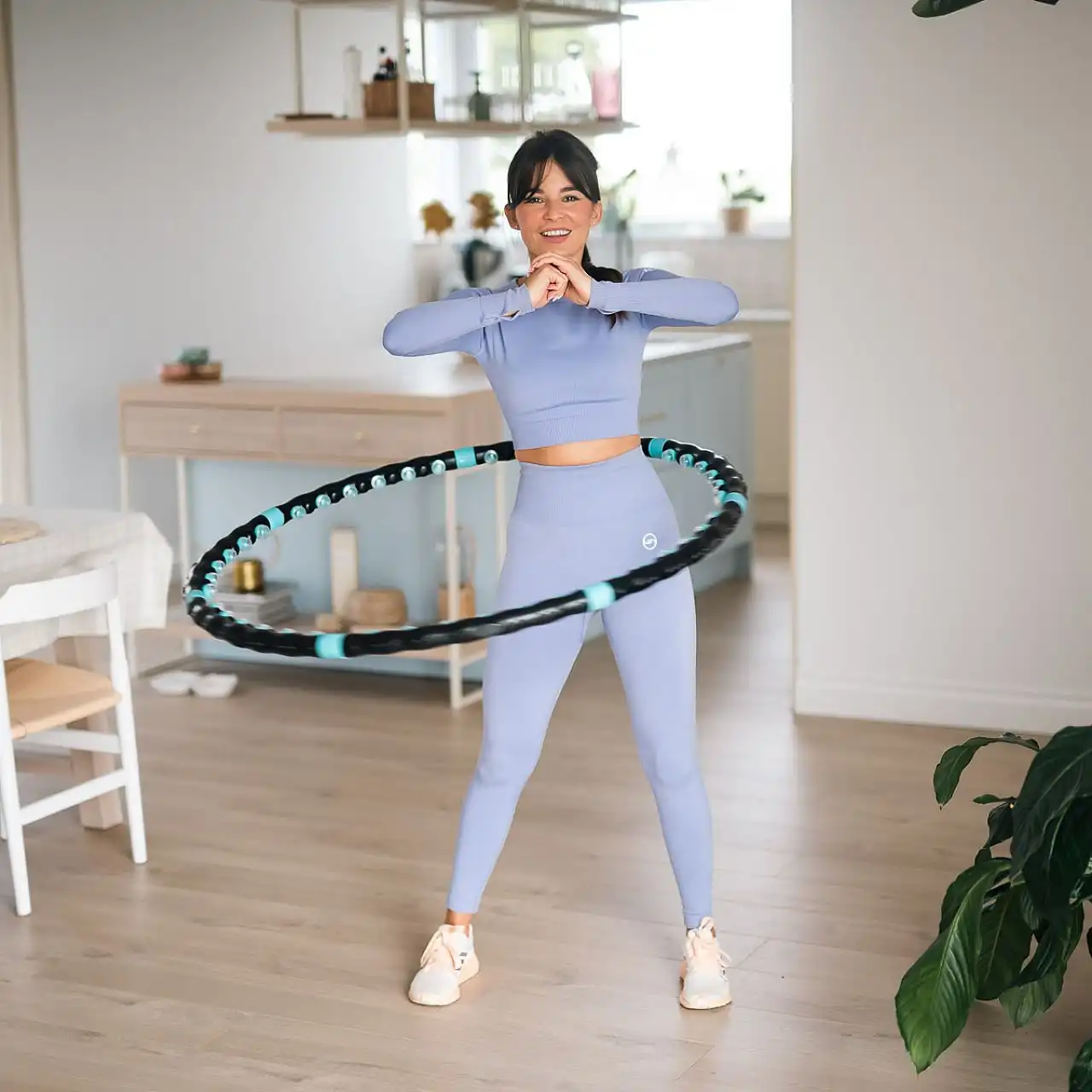 Під час тренування 42 магніти забезпечують ідеальний масаж тіла, який одночасно розщеплює жирову тканину навколо живота, стегон і сідниць. При правильному виконанні систематичних вправ значно зменшиться окружність талії. Тренування з HHP006 не тільки допоможуть вам схуднути, але й покращать вашу фізичну форму. Через кілька сеансів вправи стають настільки легкими, що ми можемо вільно рухати хулахуп вгору і вниз по тілу, розширюючи таким чином сферу дії масажу.