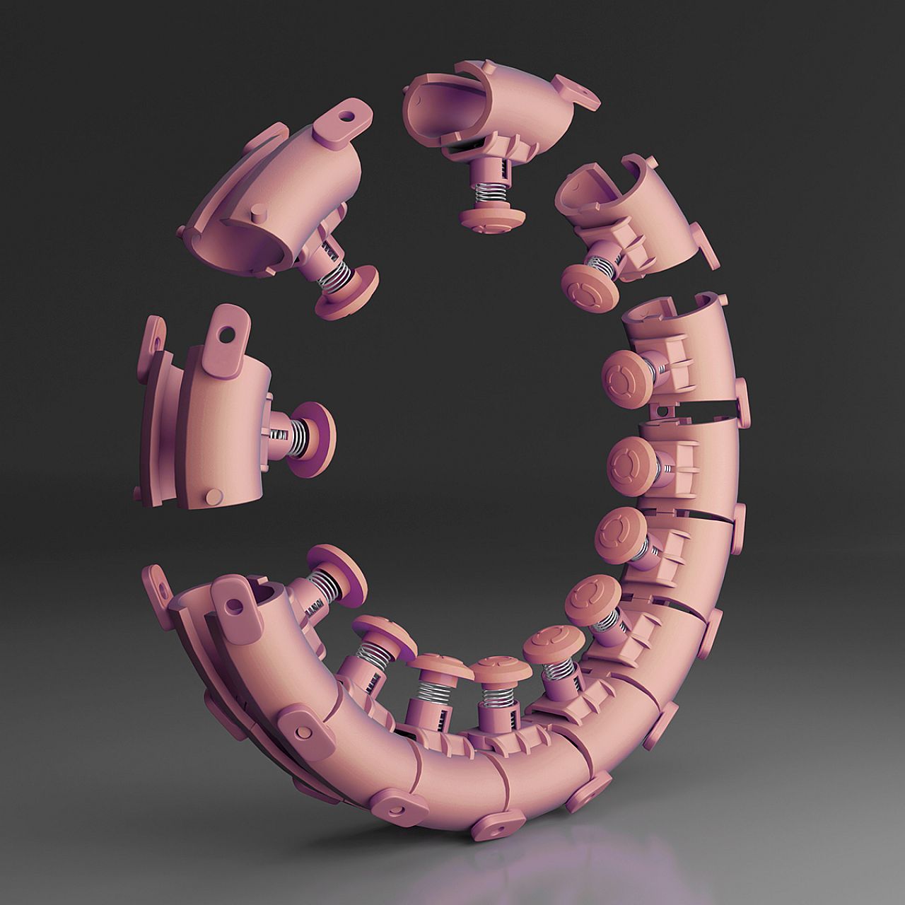 Завдяки руху на 360 градусів пружини, розташовані в головках, розташованих по всій окружності петлі, відмінно поглинають перевантаження і підлаштовуються під тіло, що створює додатковий масажний ефект, забезпечуючи тілу приємні відчуття. Техніка тривимірного масажу швидко стимулює м'язи. Вбудовані виступи зі спеціально розробленим зовнішнім виглядом мають амортизацію для комфортного тренування. Відрегулюйте інтенсивність вібрації за допомогою швидкості обертання.