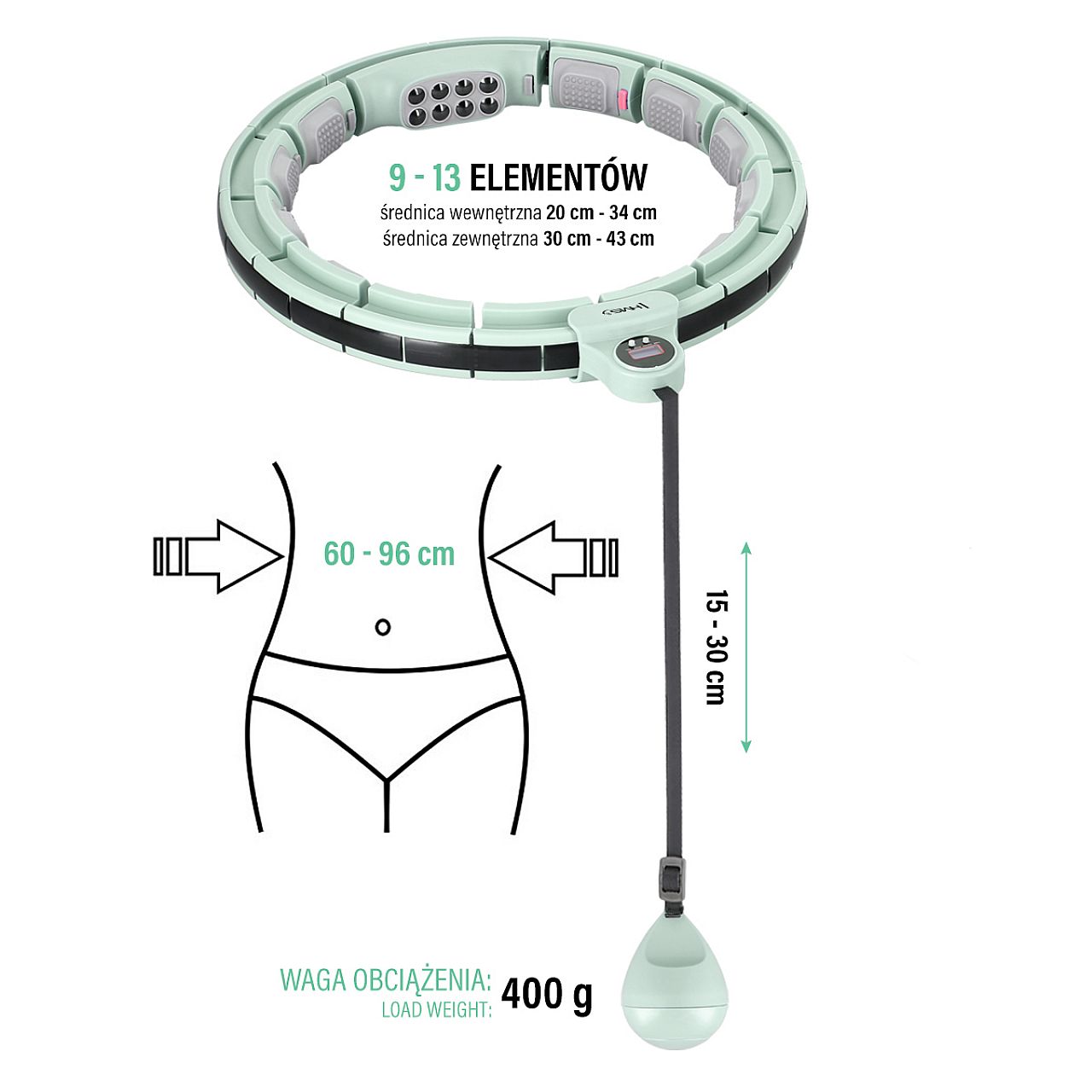 Магнітний регульований хулахуп HHM13 - ідеальне рішення для кардіотренувань вдома. Встановлені вібропоглинаючі виступи і гравітаційний м'яч забезпечують масаж всієї талії, зміцнюючи її. Магніти позитивно вплинуть на обмін речовин, а лічильник дозволить стежити за тренуваннями. У комплекті з поясом для схуднення BR163 ви досягнете фігури мрії ще швидше.