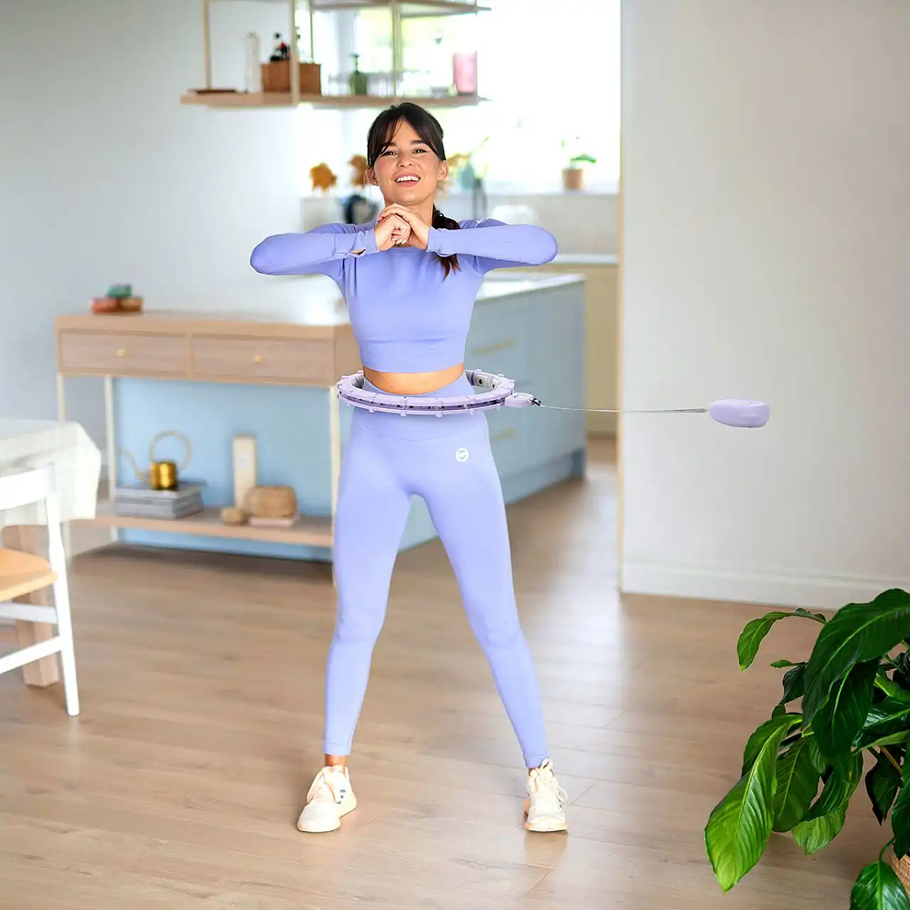 HHM14 має ширину всього 2 см, тоді як ринковий стандарт становить 5 см. Завдяки цьому він легко поміститься в сумочці, з якою ви виходите з дому, або невеликому ящику в спальні. HHM14 — найкомпактніший хулахуп у нашій пропозиції, його вага становить лише 800 грамів (разом із вагою). Монтаж здійснюється за допомогою кліпс. Просто натисніть на затискач, щоб витягнути або вставити додатковий елемент. Потім вставте гравітаційну рейку в петлю, відрегулюйте довжину ремінця, і готово. Важливо не видаляти елемент, що містить датчик, відповідальний за передачу даних.