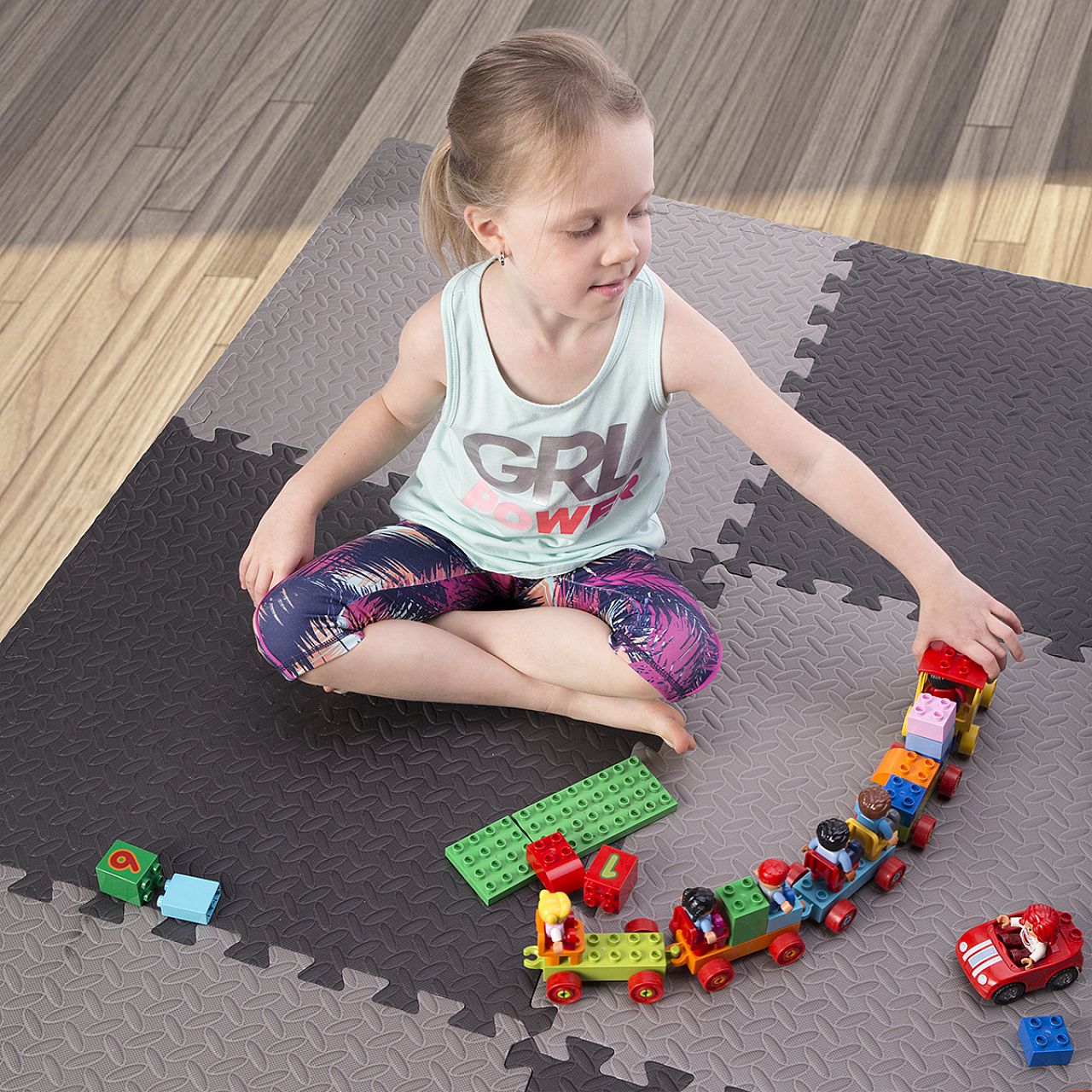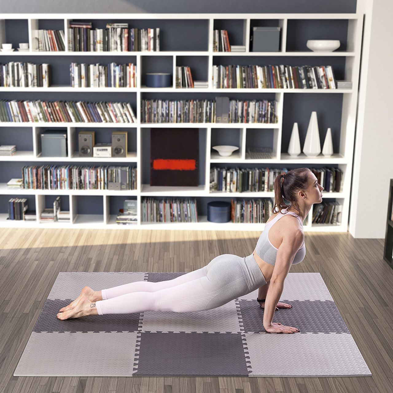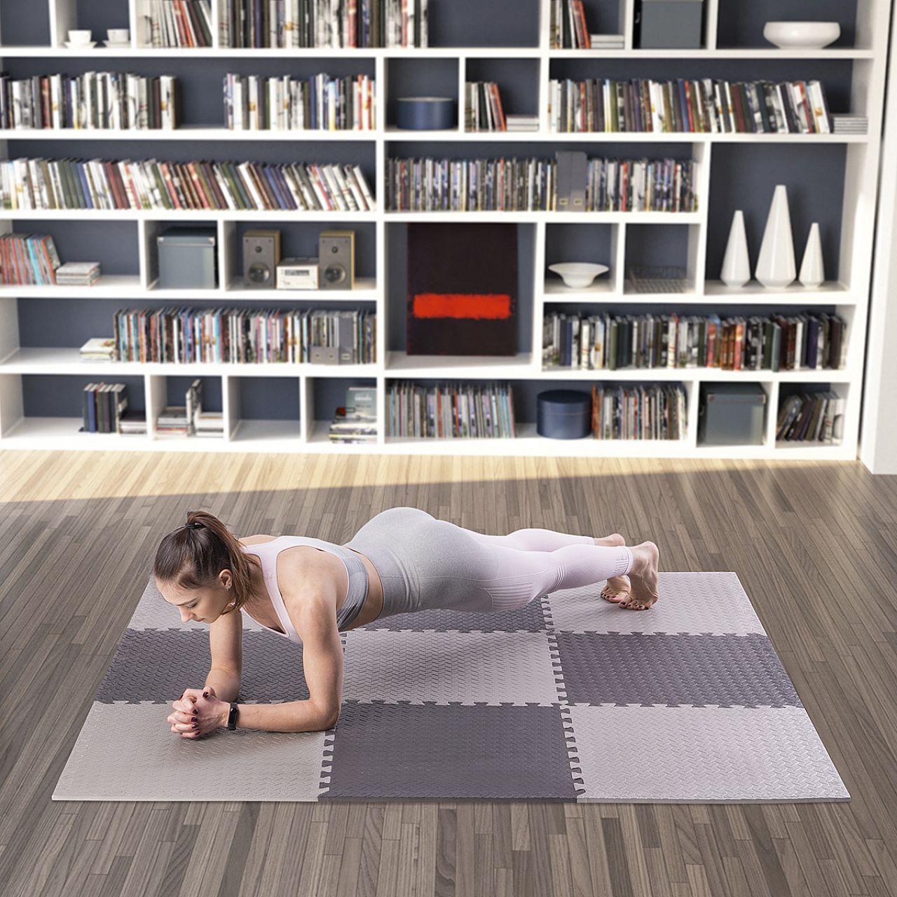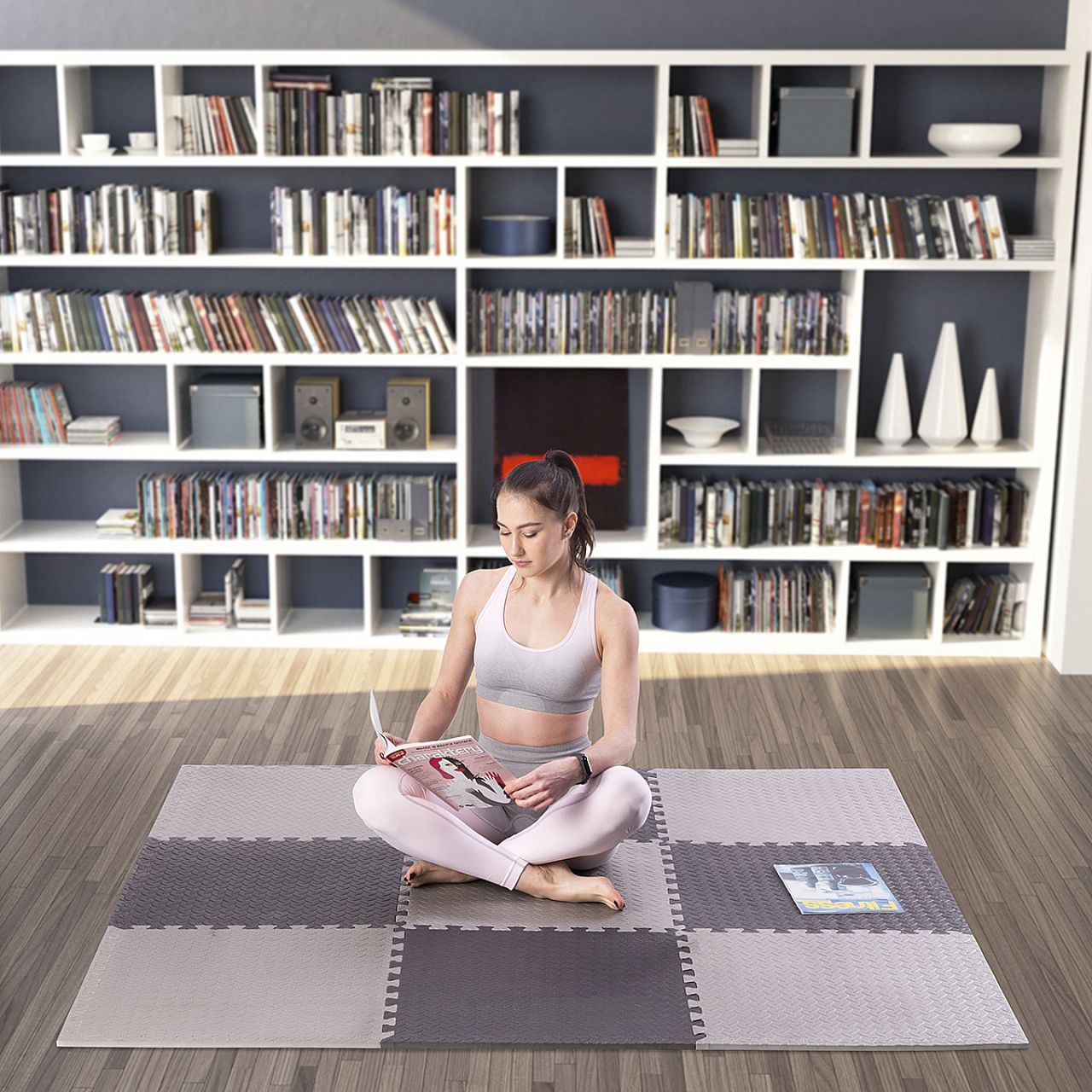 Мат може використовуватися під такі види обладнання, як лави для жиму, велотренажери, орбітреки, бігові доріжки, гребні тренажери або домашні тренажери. Завдяки системі «пазл», покриття легко налаштовується під будь-який простір, а глибокі вирізи гарантують надійне з'єднання елементів.