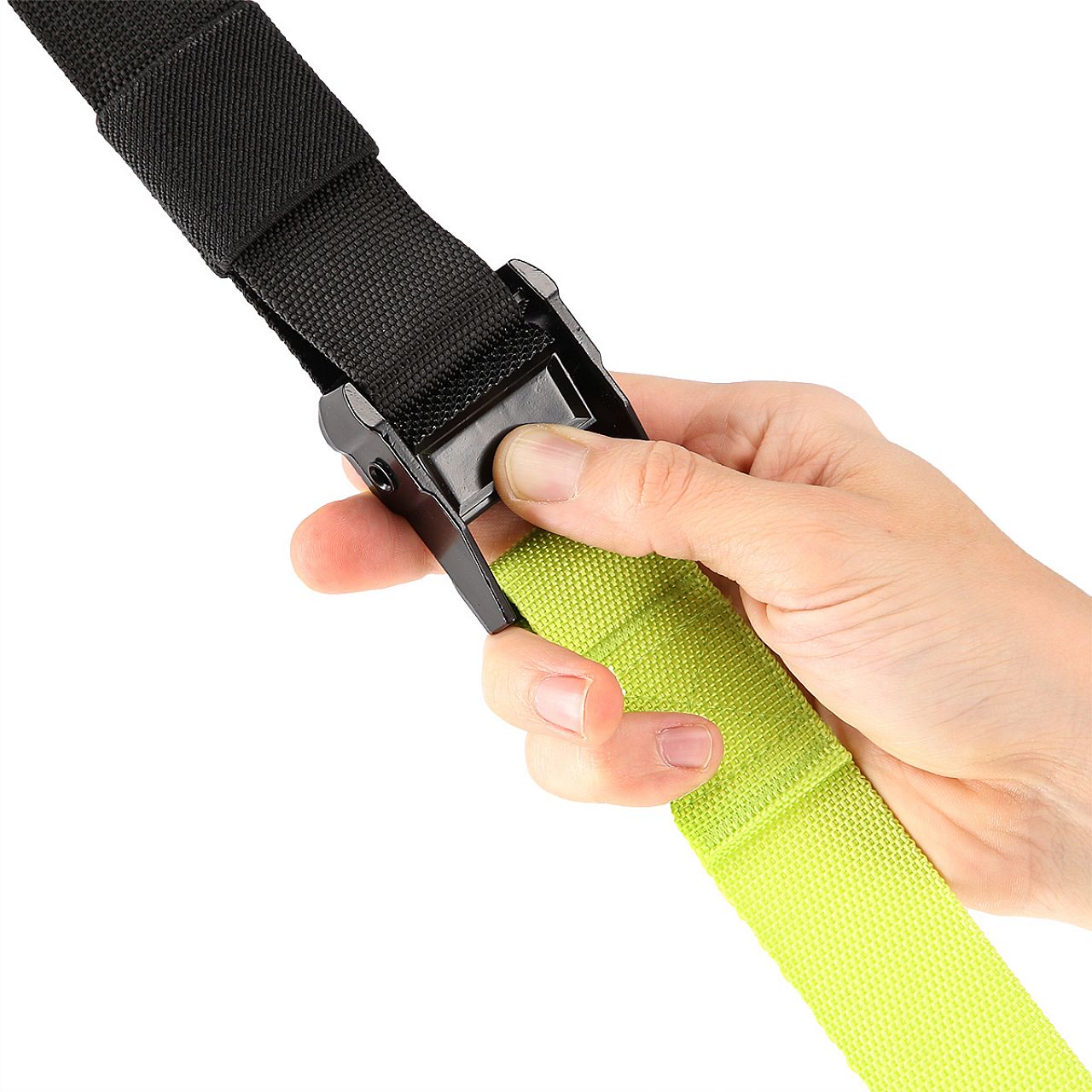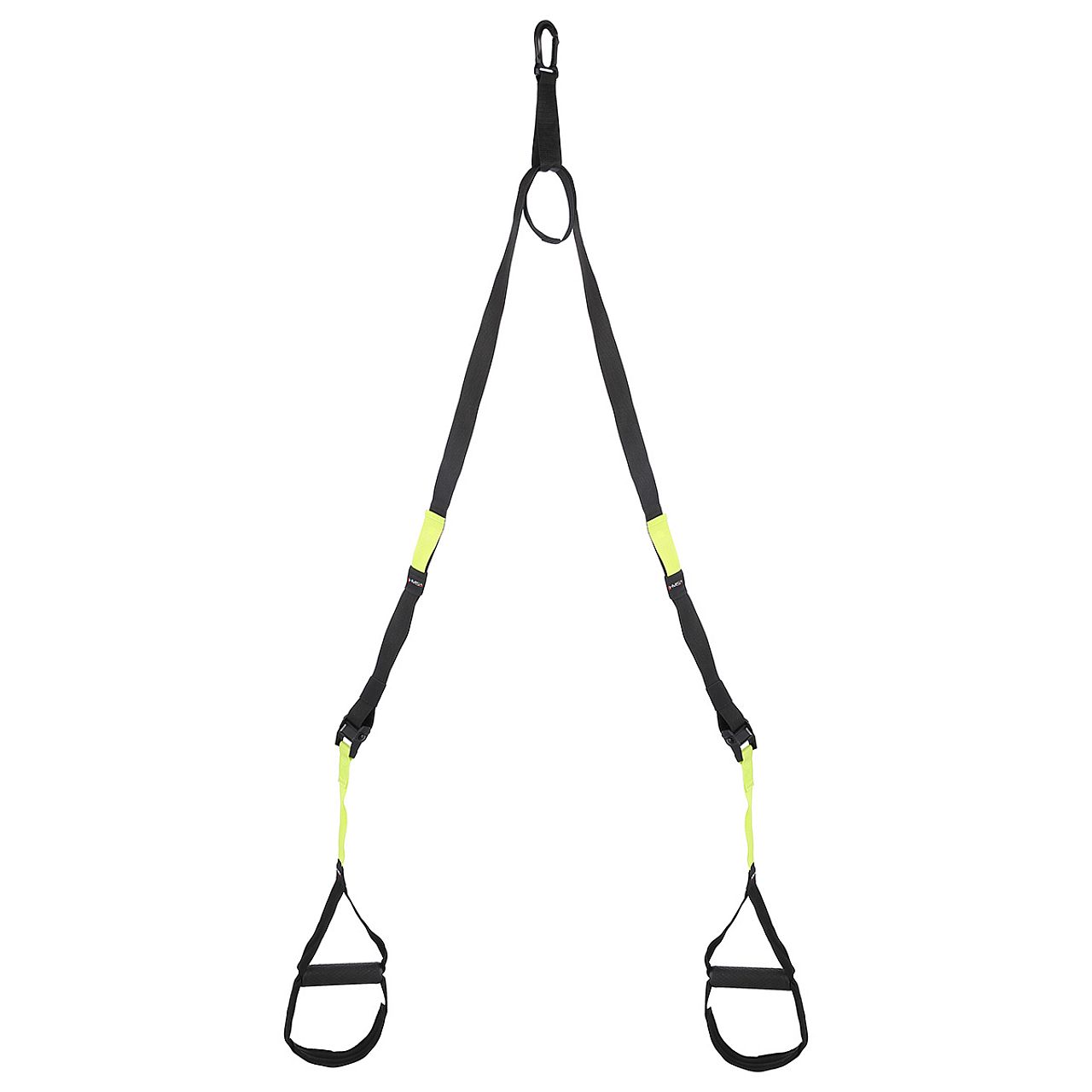 У комплект входять тренувальні стрічки з ручками і металевим карабіном і дверна ручка. Ручки покриті матеріалом, який запобігає ковзанню руки під час занять.