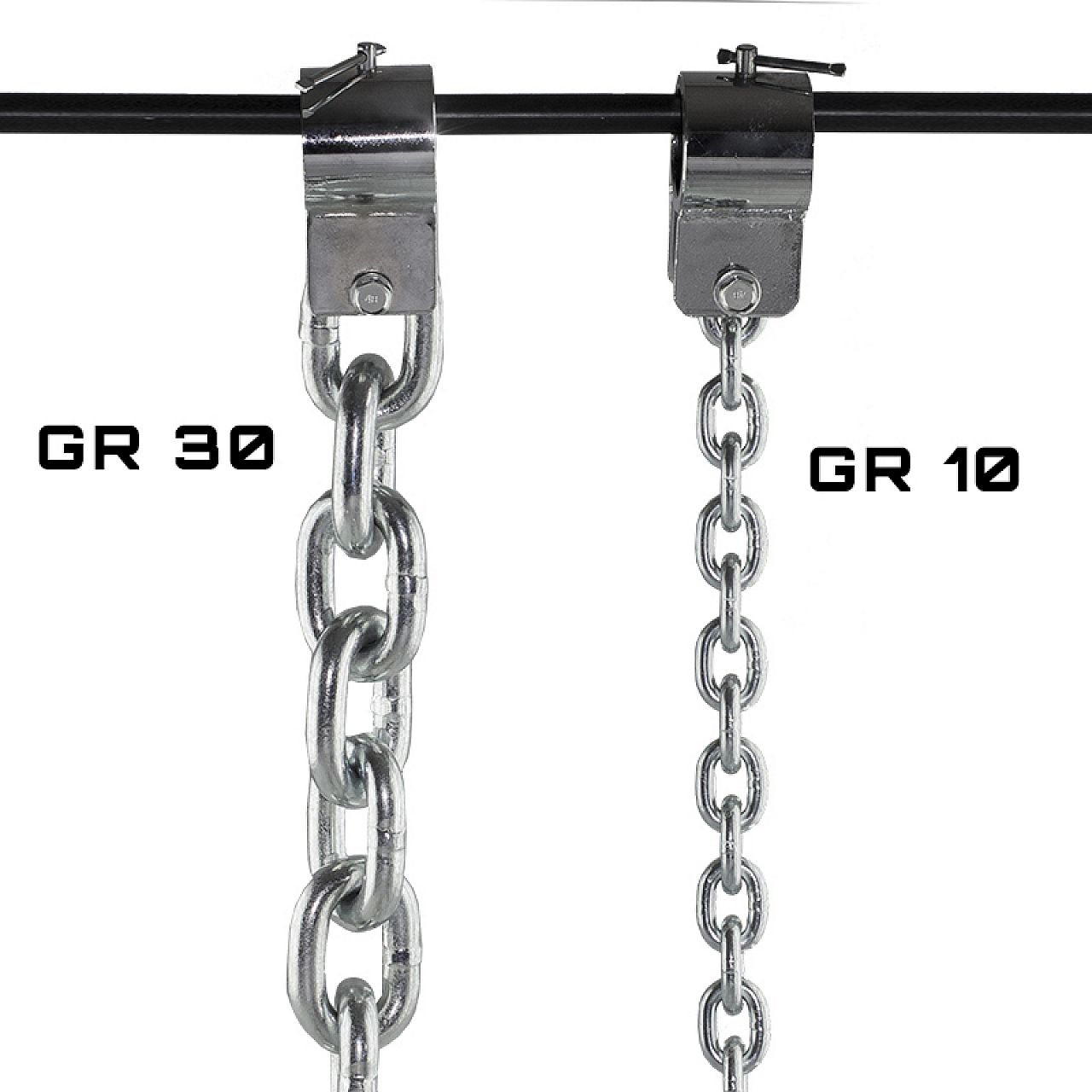 Виріб виготовлено з високоякісної сталі. Цей міцний матеріал надзвичайно стійкий до впливу навколишнього середовища. Практична і міцна система кріплення штанги робить її універсальним пристроєм для використання в домашньому тренажерному залі. Ми рекомендуємо його всім, хто хоче повною мірою реалізувати потенціал силових тренувань. Окремі ланки кожного ланцюга відриваються від землі та збільшують вагу штанги. Вага штанги досягає максимального значення в найвищій точці фази підйому руху. При опусканні планки відбувається навпаки. Потім вага зменшується пропорційно кількості ланцюга на підлозі. Ланцюги GR30 HMS позитивно впливають на фізіологічні процеси, що відбуваються в м'язах під час тренувань. Це передбачає використання явища постактиваційного посилення сили скорочення (PAP) - м'язова сила збільшується, якщо після початкової фази активації відбувається максимальне посилення сили скорочення. Використання ланцюгів в силових тренуваннях також розвиває швидкість рухів.