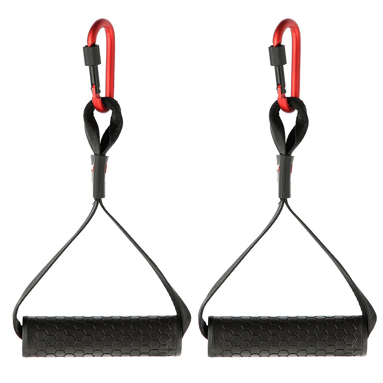 Матеріал, обтягнутий ручками, гарантує комфорт занять, захищаючи від мозолів на руках. Крім того, ідеально підібраний діаметр ручки автоматично робить хват більш щільним, а значить, м'язи передпліччя будуть сильно задіяні під час виконання вправи. Якісні ремінці, за допомогою яких ми кріпимо ручки до підйомника, дозволяють тренуватися зі значним навантаженням.
