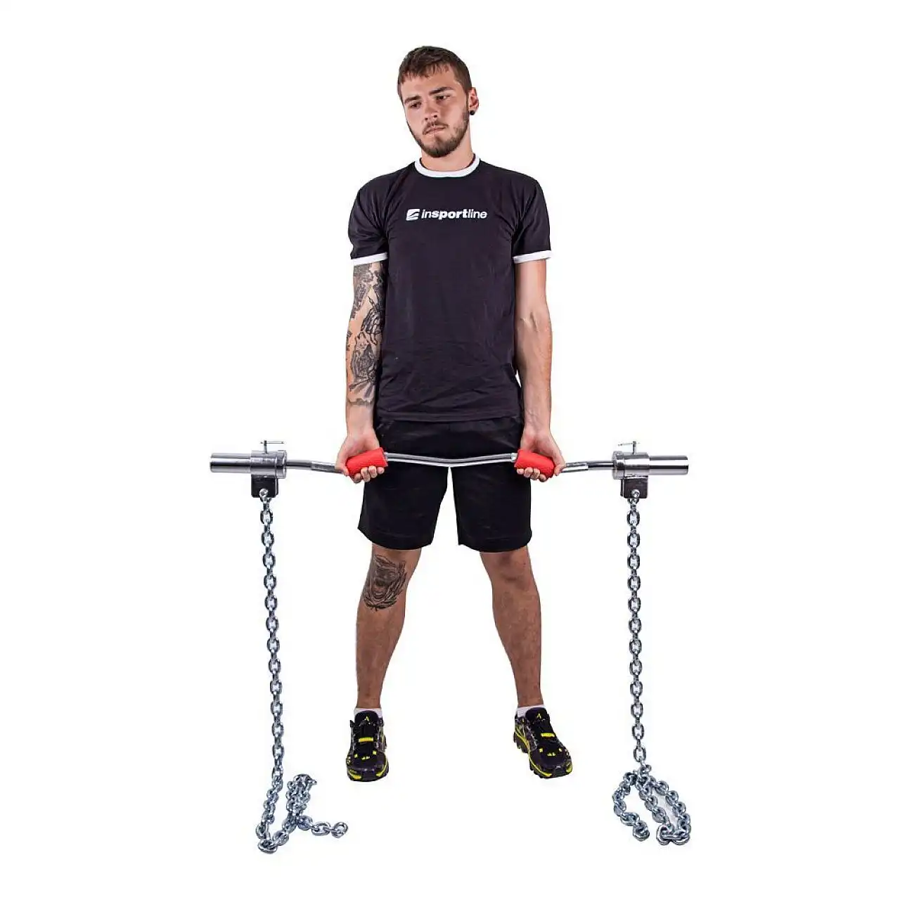 Тренувальний ланцюг InSPORTline Chainbos 5 кг - чудовий пристрій для збільшення інтенсивності кожного тренування. Він прикріплений до стрижня за допомогою кільця діаметром 50 мм так само, як диск, і діє як навантаження. Принцип використання ланцюгів у тому, що у нижньому положенні вправи частина їх ваги лежить підлозі. Коли штанга піднімається, вага ланцюга збільшується, і користувач повинен збільшити міцність. Таким чином, м'язи повністю задіяні у всьому діапазоні рухів, і фізичні вправи є максимально ефективними. Тренувальні ланцюги inSPORTline Chainbos 5 кг Вони підходять для широкого спектру вправ. Ви використовуватимете їх для стискання штанги в лежачому положенні, тяги, присідань або зміцнення біцепса. В якості альтернативи можна використовувати ланцюг як навантаження для тіла і збільшити вагу в спорядженому стані при підтягуванні або опусканні. Можливості справді безмежні. Ланцюги виготовлені з високоякісної сталі. Завдяки цьому вони дуже довговічні та не ризикують швидко зноситися. Довжина ланцюга також достатньо для високих користувачів. Якщо ви шукаєте спосіб покращити результати тренувань, ланцюжок для штанги inSPORTline Chainbos – це ідеальний вибір для вас.