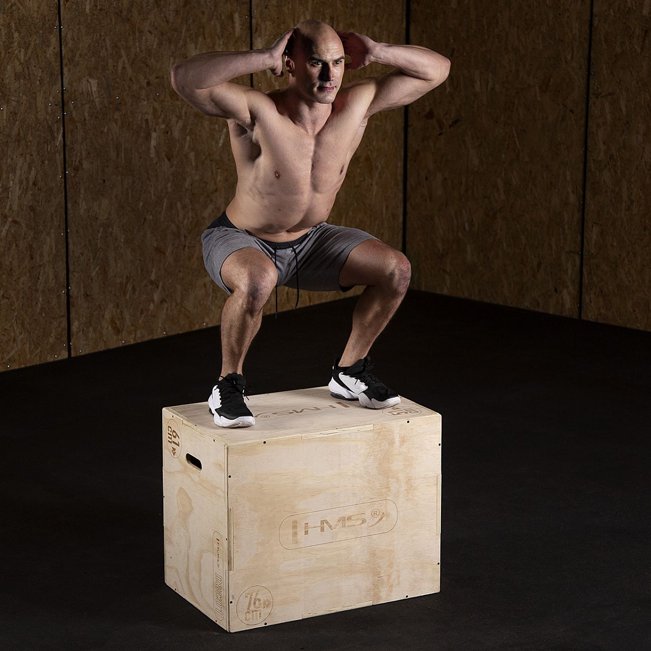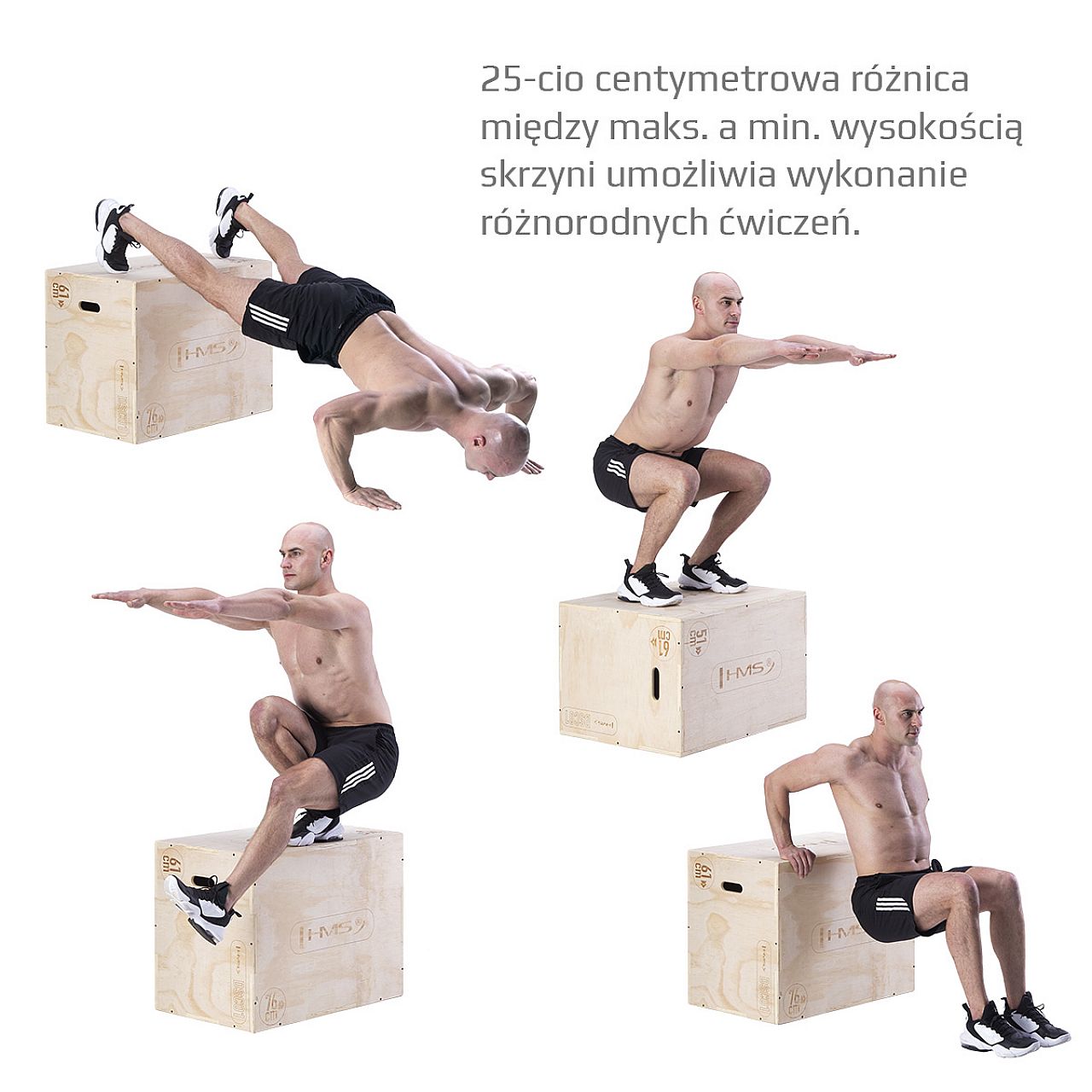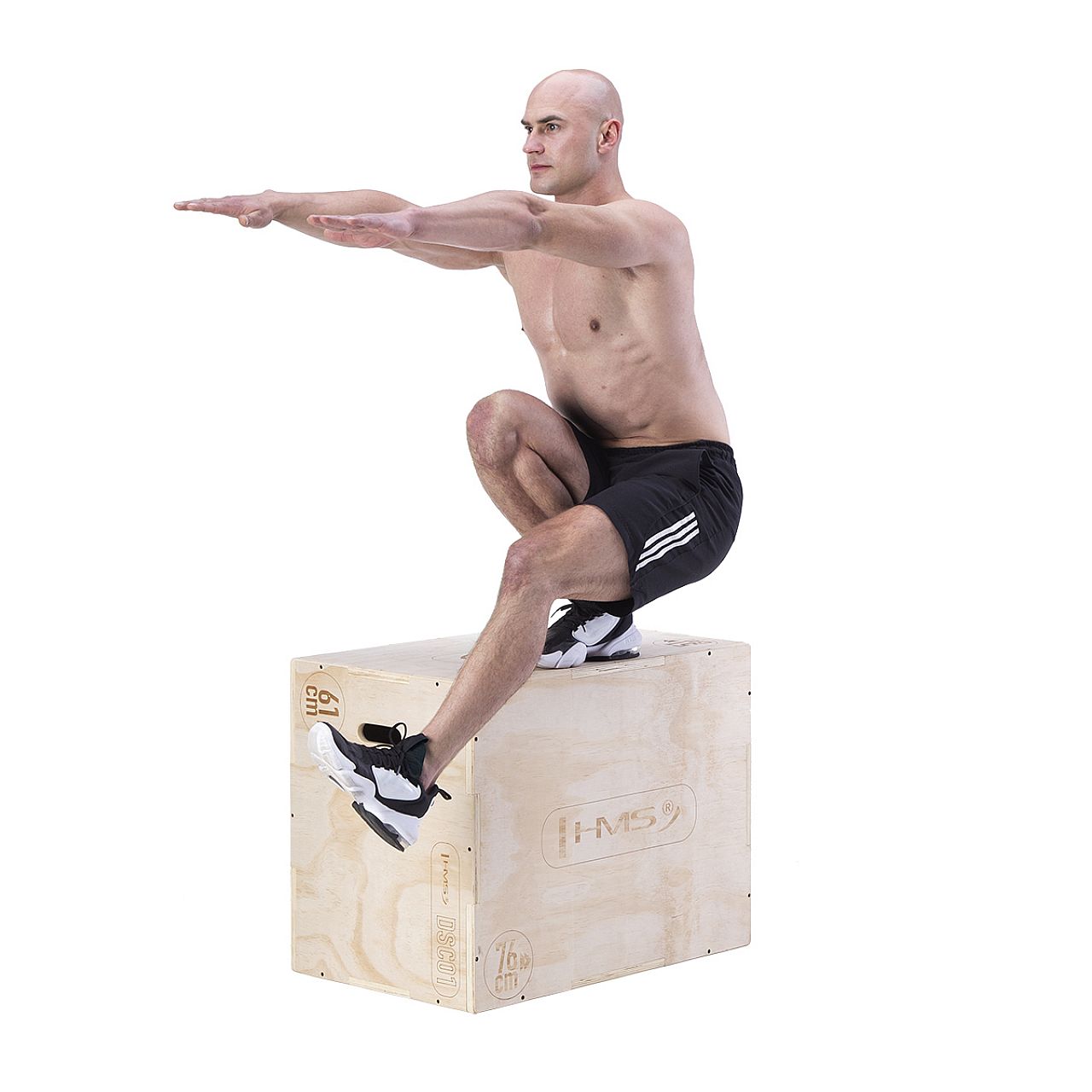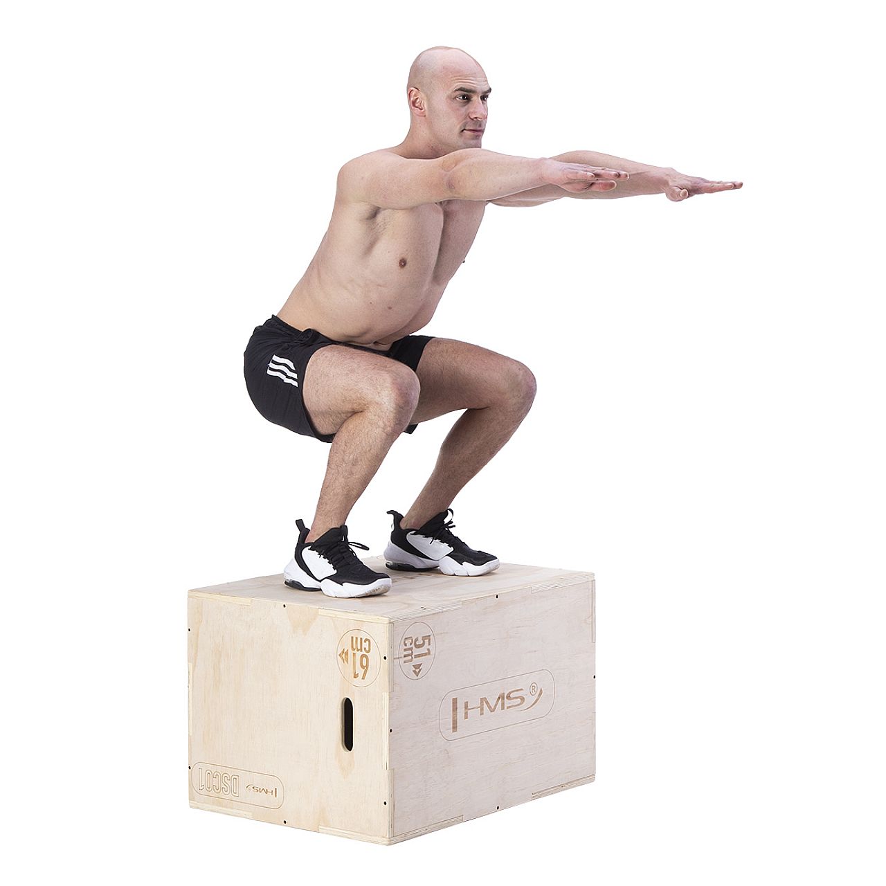 DSC01 HMS - це дерев'яна коробка, призначена для крос-тренувань. Повертаючи ящик різними сторонами, ми можемо отримати три висоти і підлаштувати їх під рівень просування людини, що тренується.