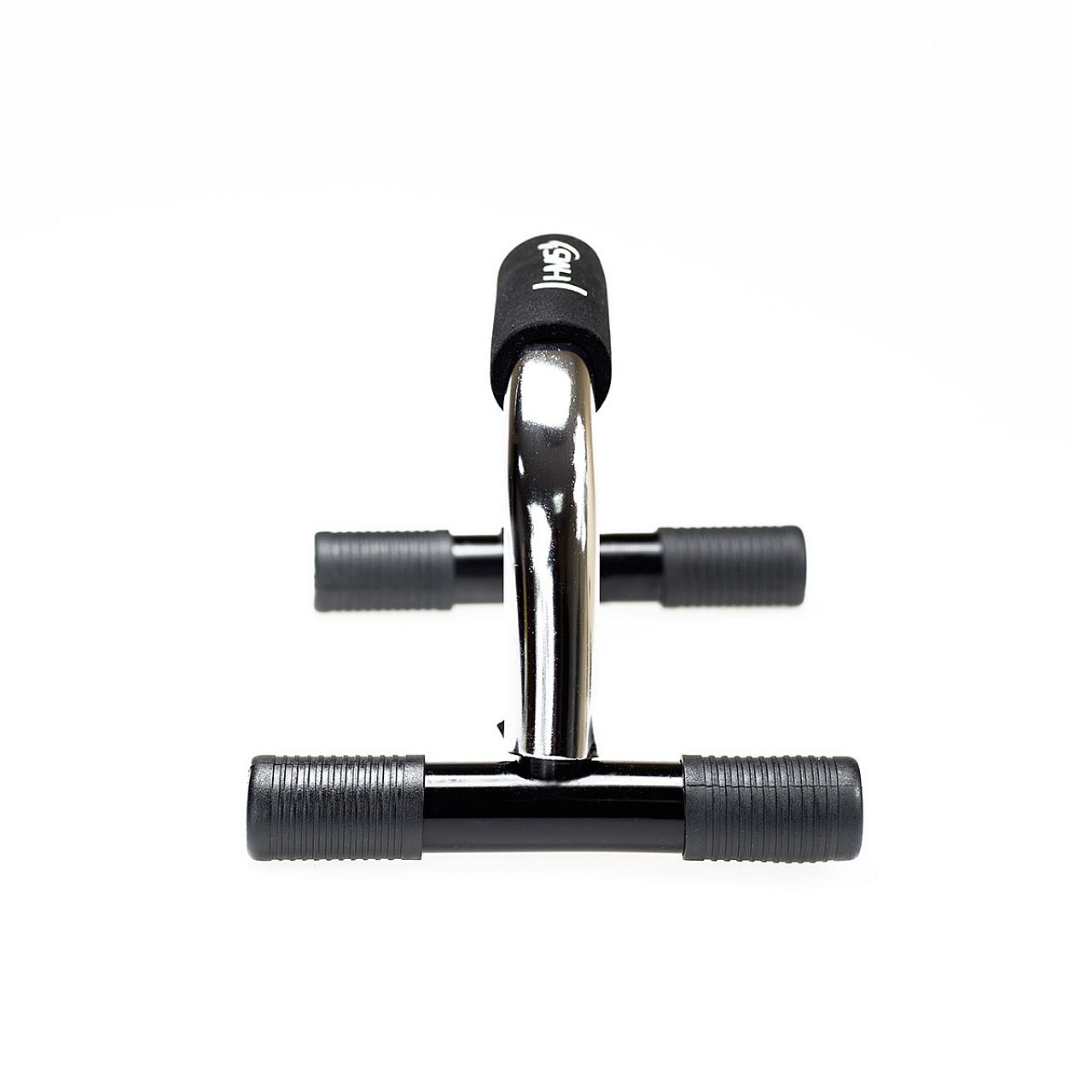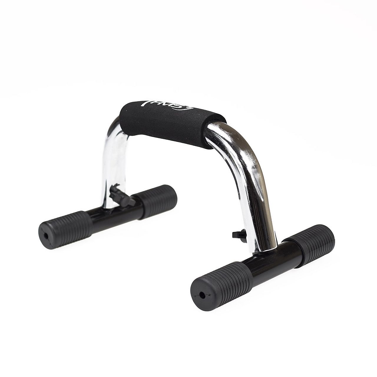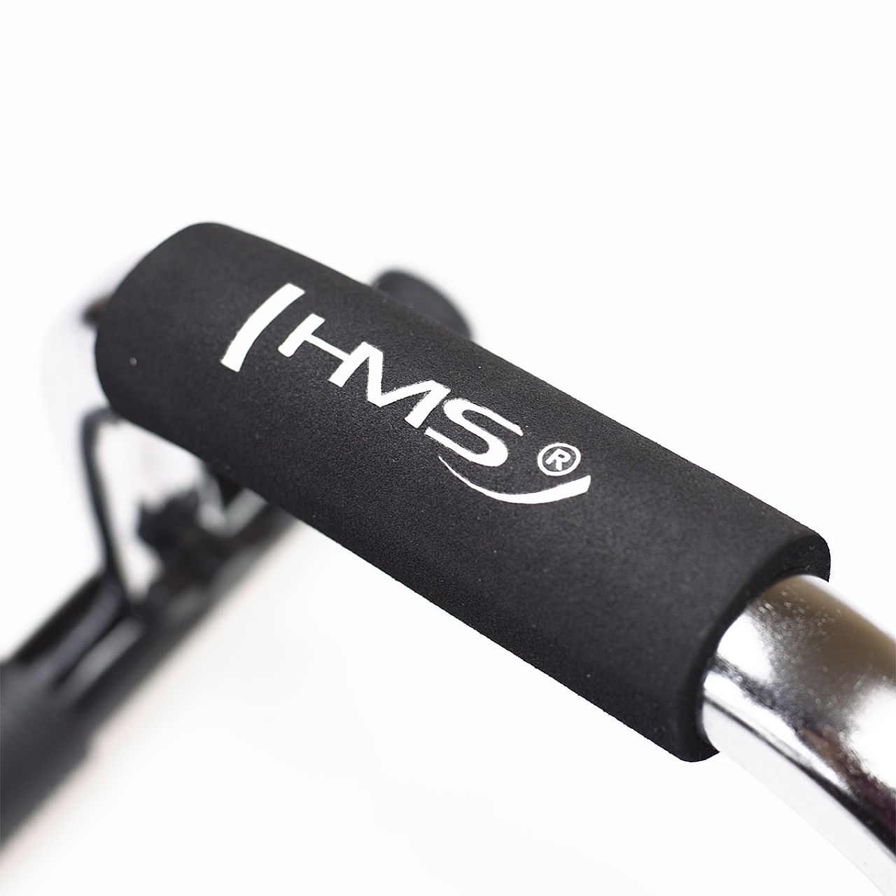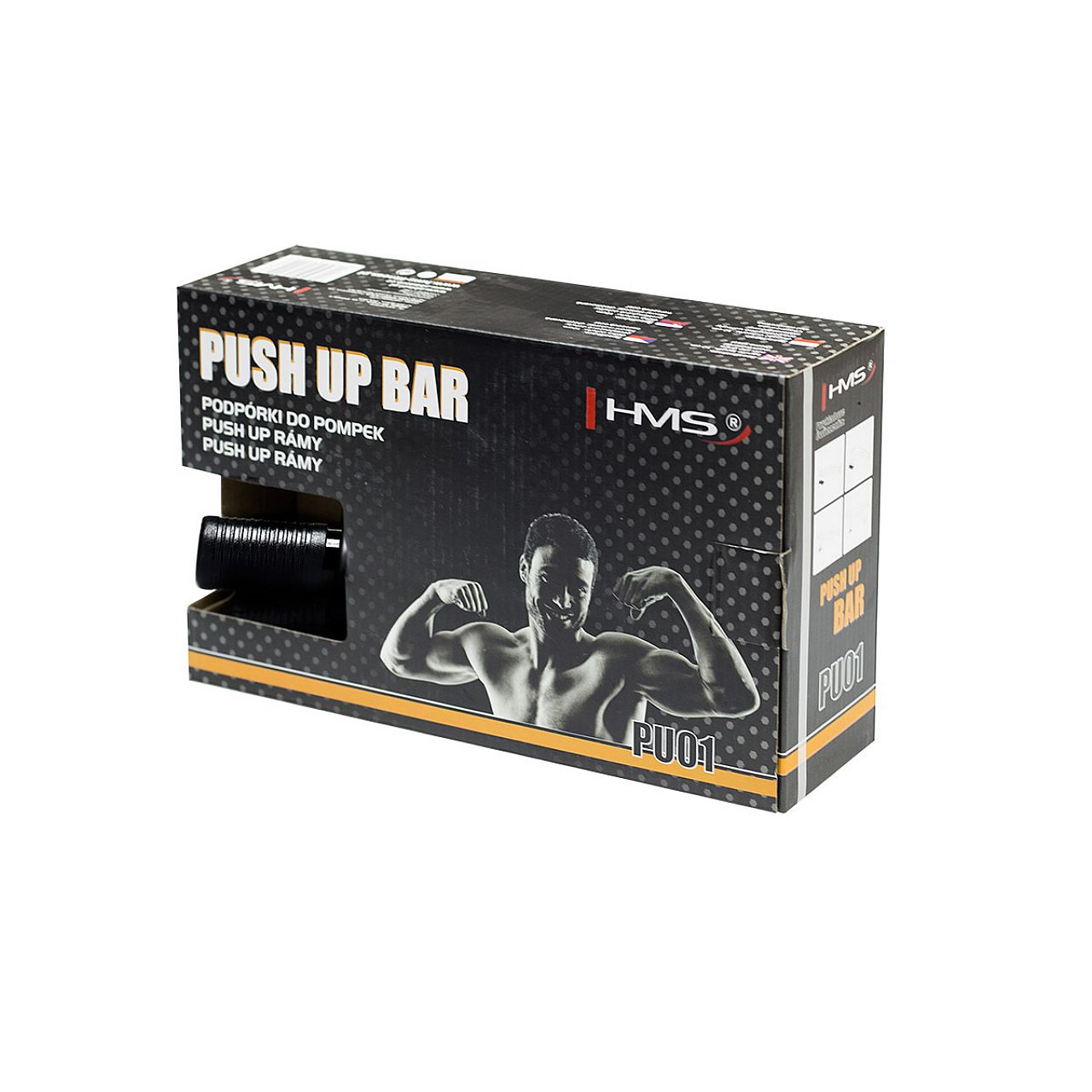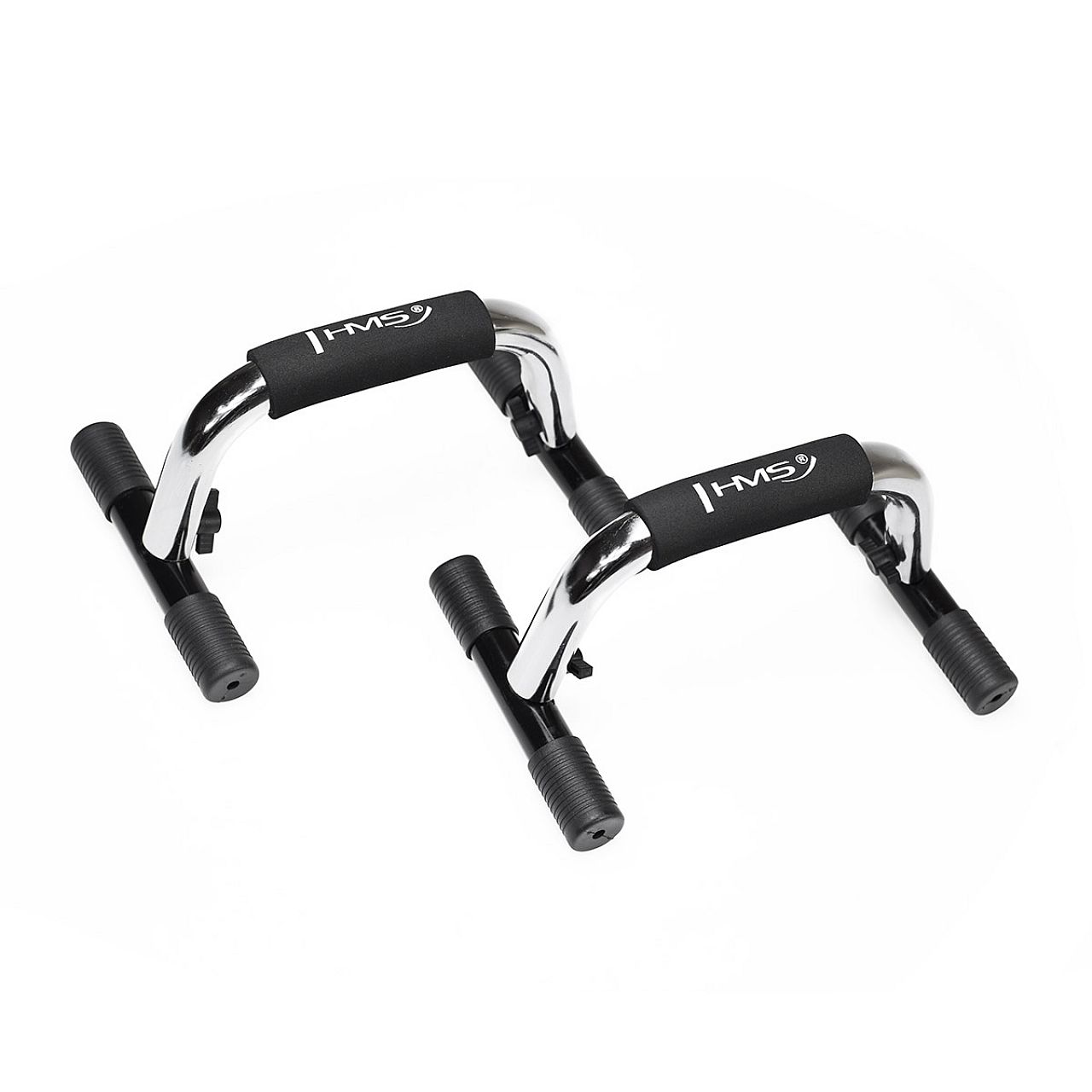 PU01 HMS - ручки для віджимань. Пристосування допоможе зміцнити м'язи рук, стегон і тулуба. Ручки виготовлені з матеріалів найкращої якості. Їх посилена структура стійка до пошкоджень, а безпека забезпечується нековзкими ніжками. Ручки мають дельтоподібну форму, завдяки чому забезпечують стійку опору та рівномірно розподіляють вагу тіла під час занять. У свою чергу, захватна частина покрита м'яким поролоном. PU01 мінімізує тиск на кисті, зап'ястки та лікті під час виконання віджимань із вузьким і широким розносом і хрест-навхрест до тіла. Збільшуючи інтенсивність вправ для верхньої частини тіла, ви швидко наростите міцні біцепси та трицепси.
