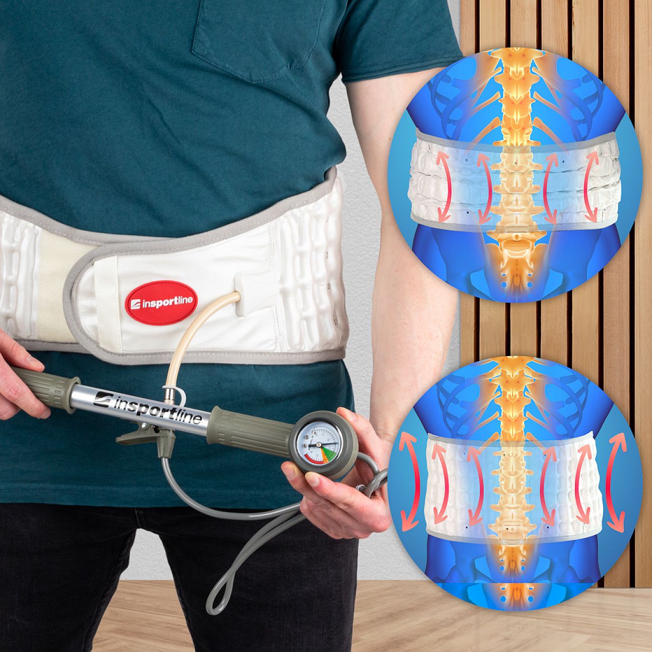 Фіксуючий поперековий опорний ремінь inSPORTline Ronyo - чудовий аксесуар, який забезпечує підтримку нижнього брекета та допоможе вам швидко повернутися у форму! На джгуті є кілька тягових стовпів. Після накачування стовпи повітряної тяги згуртовують поперековий відділ хребта, допомагаючи вашій талії пристосуватися до відповідного положення, відкриваючи міжхребцеві простори та забезпечуючи полегшення болю . Цей підтримуючий ремінь забезпечує комфортну та ефективну тягу та декомпресію, що зменшує навантаження навколо зв’язок.