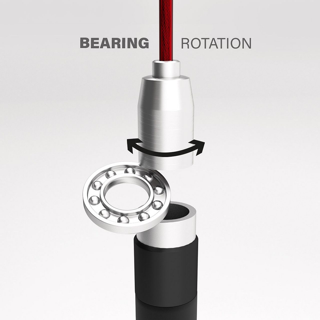 Його інноваційний дизайн забезпечує безпрецедентну швидкість і точність рухів під час виконання вправ. Ручки для скакалки оснащені обертовими головками, які запобігають скручування скакалки під час виконання вправ. Прилад виготовлений з матеріалів найкращої якості.