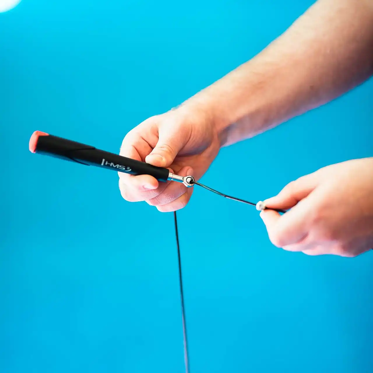 Його інноваційний дизайн забезпечує безпрецедентну швидкість і точність рухів під час виконання вправ. Ручки для скакалки оснащені обертовими головками, які запобігають скручування скакалки під час виконання вправ. Прилад виготовлений з матеріалів найкращої якості.