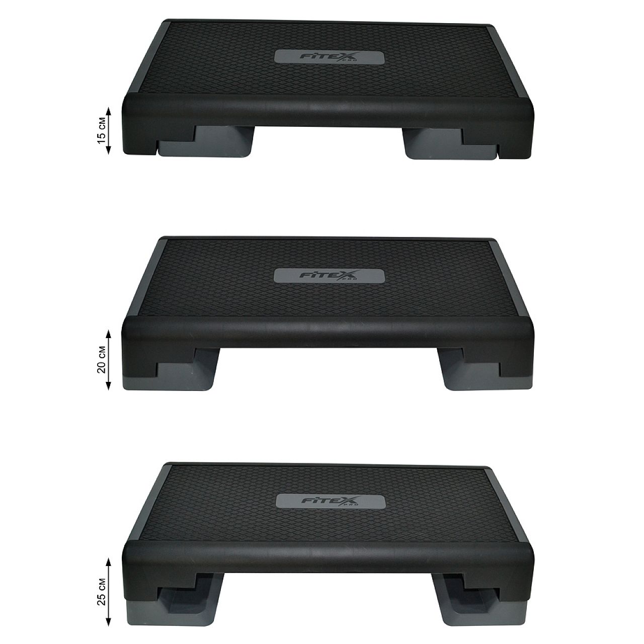 Степ-платформа Fitex MD1707 може регулюватись на різні рівні висоти. Для стійкості платформи на її основі передбачені гумові вставки. Модель виконана в стильному кольорі та відрізняється продуманою конструкцією.