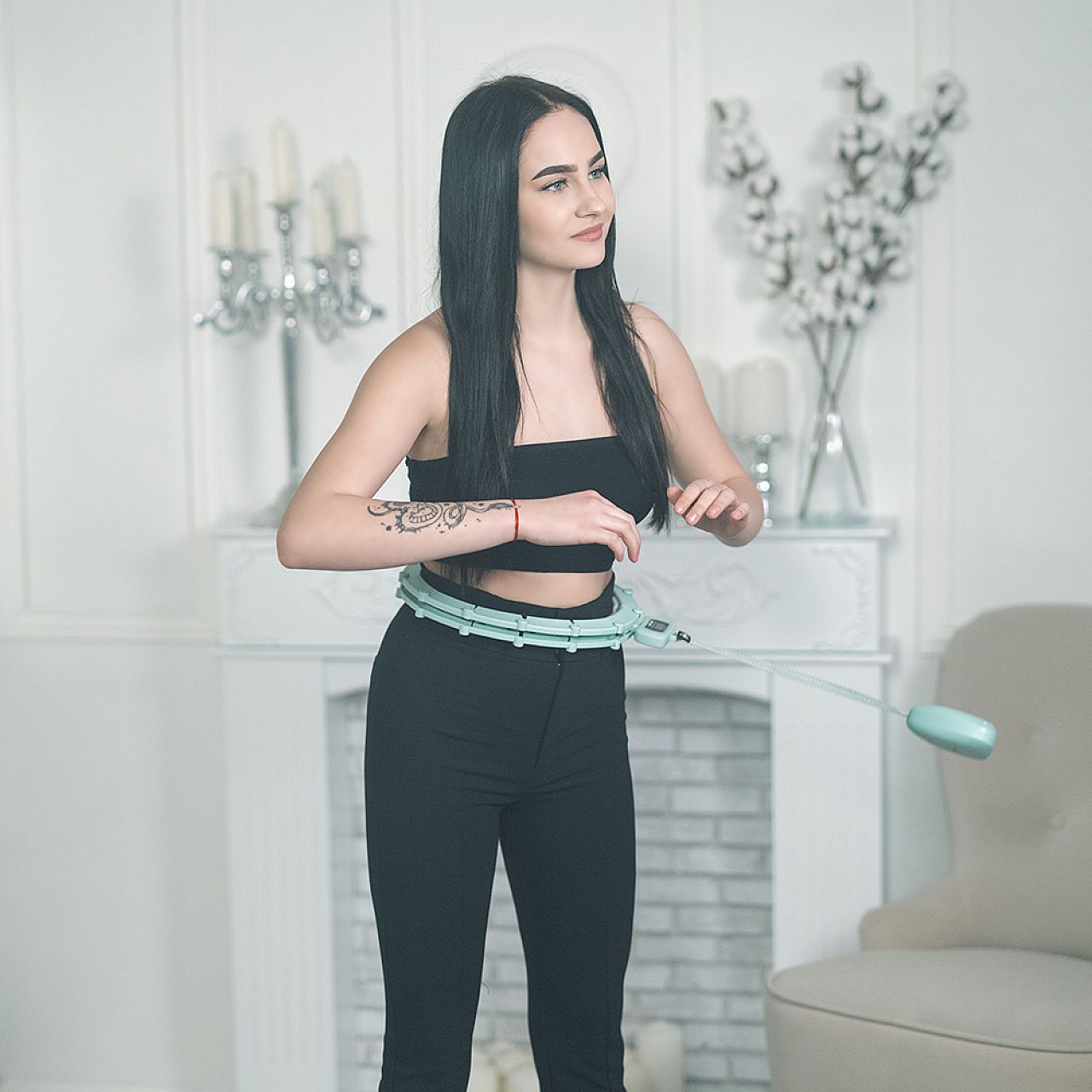 Відрегулюйте розмір обруча відповідно до окружності талії , щоб він був достатньо великим , але не занадто великим (він повинен сидіти на стегнах ). Відрегулювавши розмір, помістіть анкер із вагою всередину рейки та закрийте обруч . Після цього перекиньте вагу в тому напрямку, в якому ви будете обводити стегна, і почніть виконувати вправу. На інтенсивність вашого тренування впливає швидкість, з якою ви обертаєте стегна, і відстань ваги від тіла .